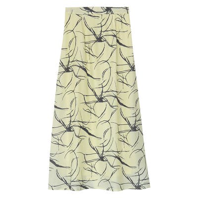 薄手で柔らかな落ち感のある風合いが女性らしい雰囲気に。抽象的な柄がきれいめもカジュアルにも合わせやすいデザインです。