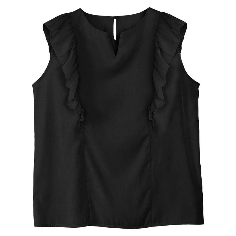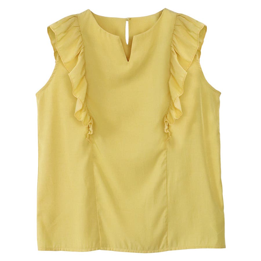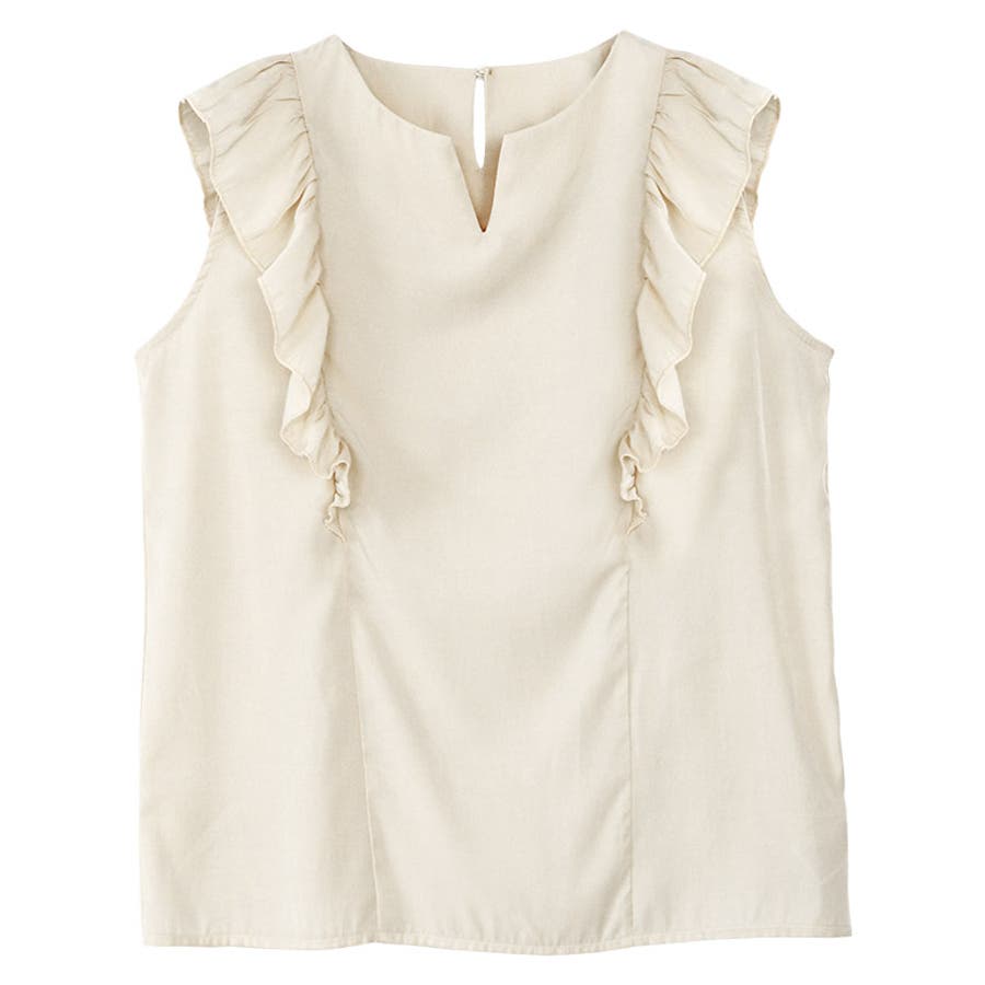 肩のフリルがアクセントになり、華奢に見せてくれるデザインブラウス。キーネックで抜け感と上品さをプラスしました。きれいめにもカジュアルにも着回せるアイテムです。