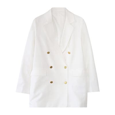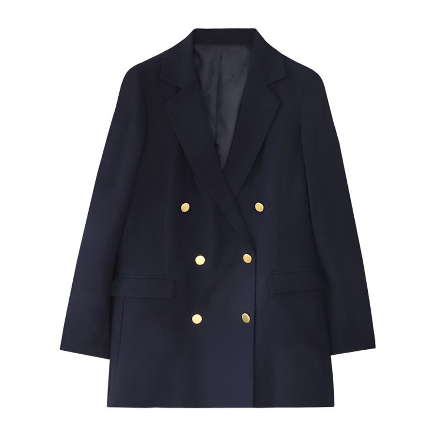 ON/OFF問わず活躍する定番型のジャケット。ダブルブレストやゴールドボタン使いが上品ながらもトレンド感をプラスします。タイトすぎないややゆとりのある身頃なので、カジュアルスタイルにも◎