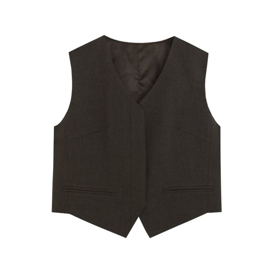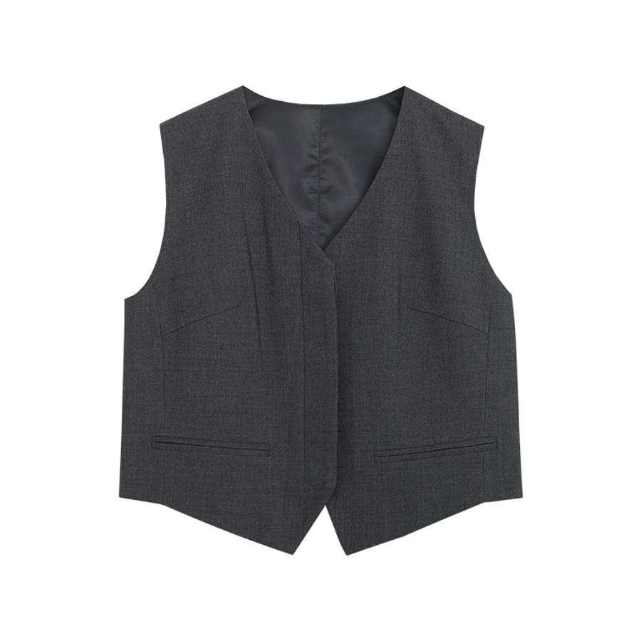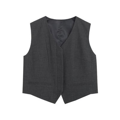 モードなスタイリングへと導くベストは比翼仕様ですっきりと上品なデザインに。どんなボトムとも合わせやすいコンパクトなサイジングに仕上げました。同素材のパンツやジャケットとセットでの着用もおすすめです。