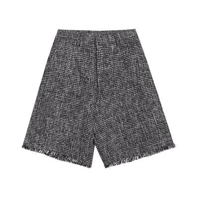 旬のショートパンツをツイード素材に落とし込むことで、カジュアルすぎない女性らしい印象に。裾のフリンジがカジュアルなアクセントになってくれます。同素材のジャケットとセット着用するだけでおしゃれスタイルに仕上がります。