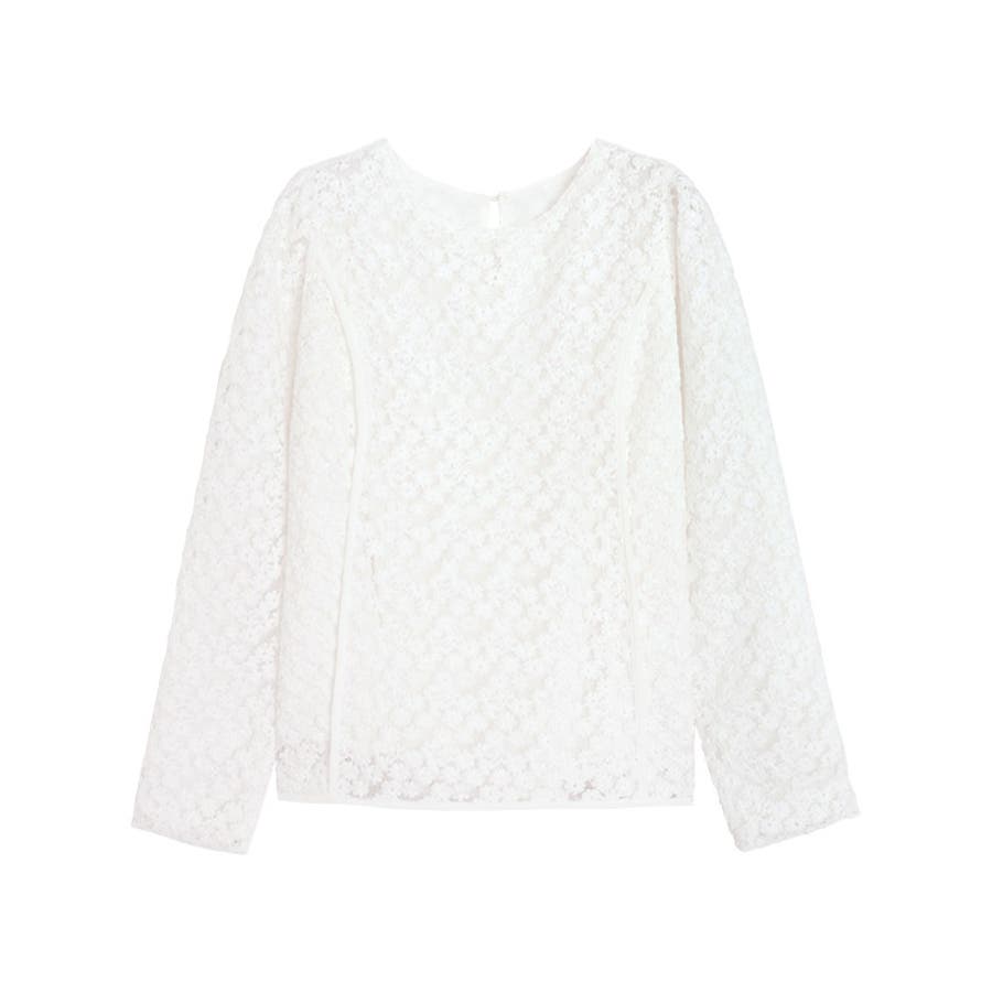 総レースパフスリーブペプラムブラウス ブラウス レース素材