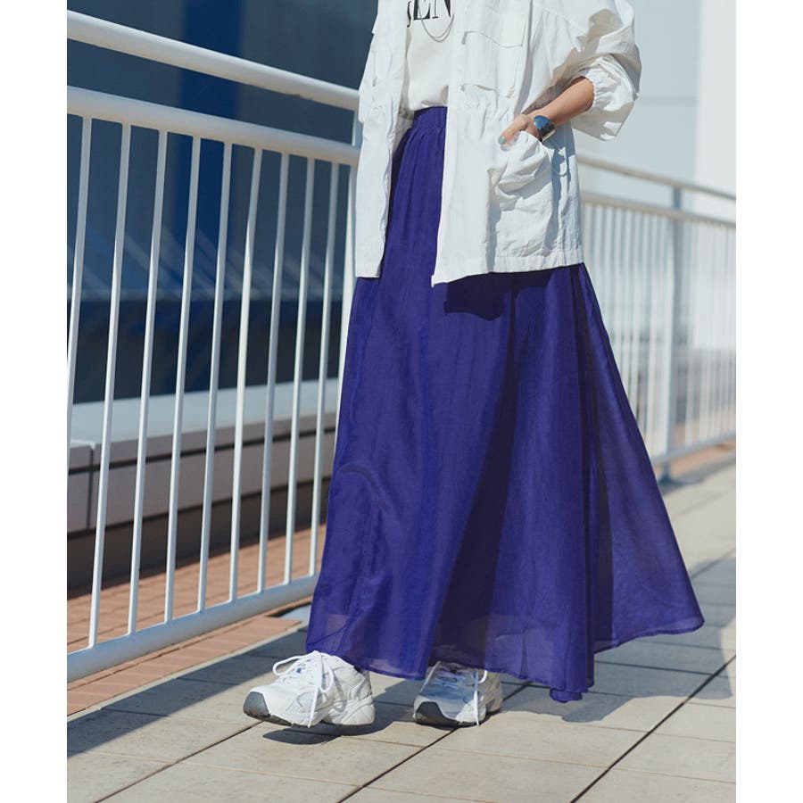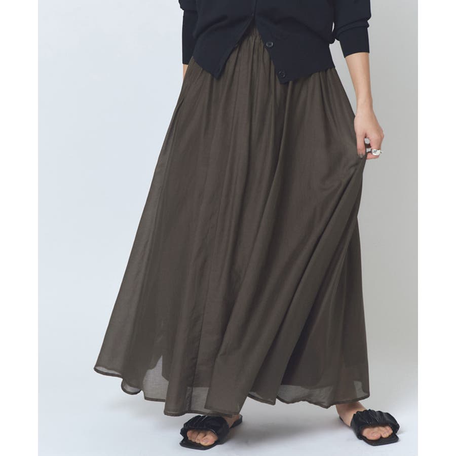 ふんわりとボリュームたっぷりなギャザーフレアスカート。足元まであるロングな丈感で夏のこなれた大人のスタイリングにマッチします。ウエストはゴム仕様でストレスフリー。ボリュームたっぷりながらも軽く、穿き心地の良い一枚です。