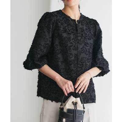 2wayジャカードジップボリュームブラウス ブラウス フラワージャカード