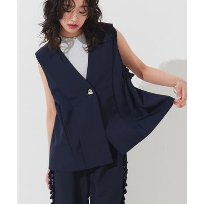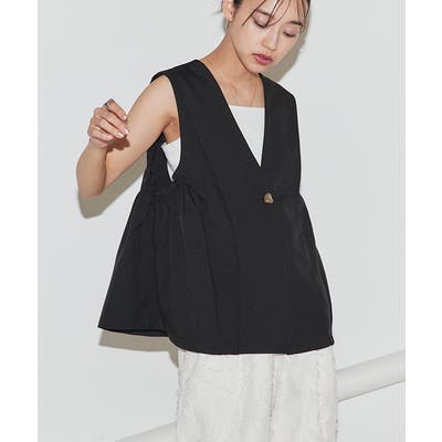両サイドに施したギャザーデザインが可愛いジレベスト。トレンドの変形シルバーボタンがアクセントをプラスし、前身頃の切替デザインがスタイルアップを叶えてくれます。プラスワンするだけでいつものコーデをグッとおしゃれに魅せてくれるアイテムです。