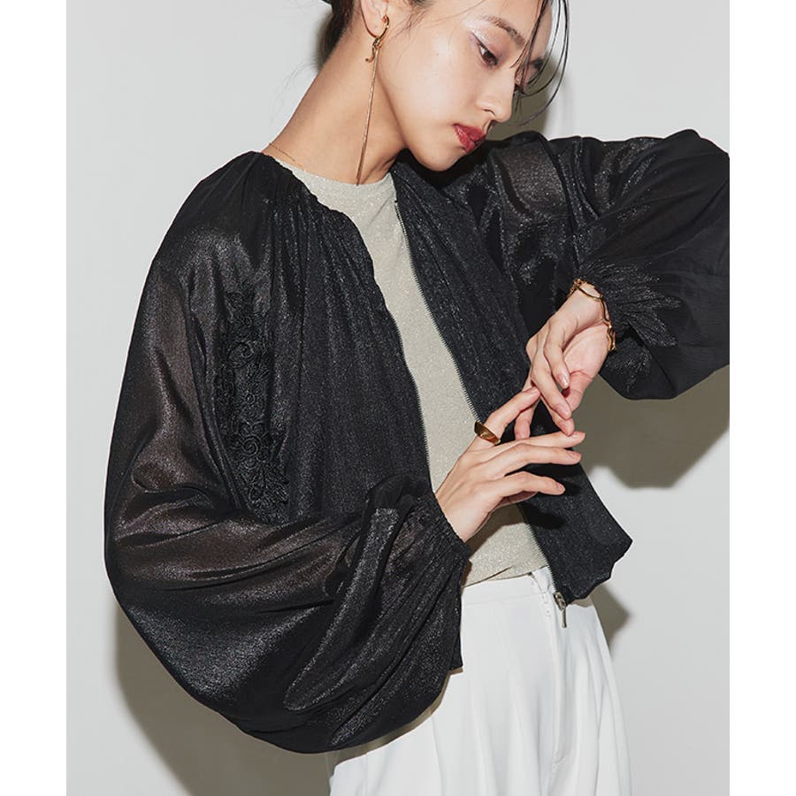 右袖部分に施したレース刺繍が程良くアクセントになる大人ブルゾン。袖と裾部分のボリュームたっぷりのバルーンシルエットがふんわりとしたフォルムを作り出します。前はファスナー開きで羽織りとしても着用可能。旬なクロップド丈はスタイリングに鮮度をプラスしてくれます。