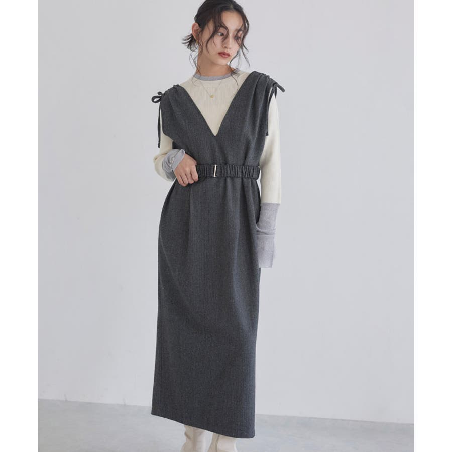 ベルト付きヘリンボーンジャンパースカート ジャンパースカート ジャンスカ