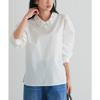 ビジュー襟ボリュームスリーブブラウス ブラウス ビジュー