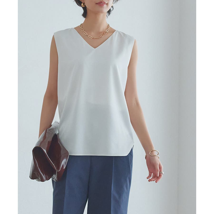 程よくすっきりとしたサイズ感で、スタイルアップ効果をプラス。キレイめな印象ながら程良く抜け感のあるVネックと、スタイリングにカジュアル感をプラスすするクルーネックの、前後2wayデザイン。シンプルなボトムスと合わせるだけで華やかさをプラスしてくれるアイテムです。同素材パンツとのセットアップもおすすめです。