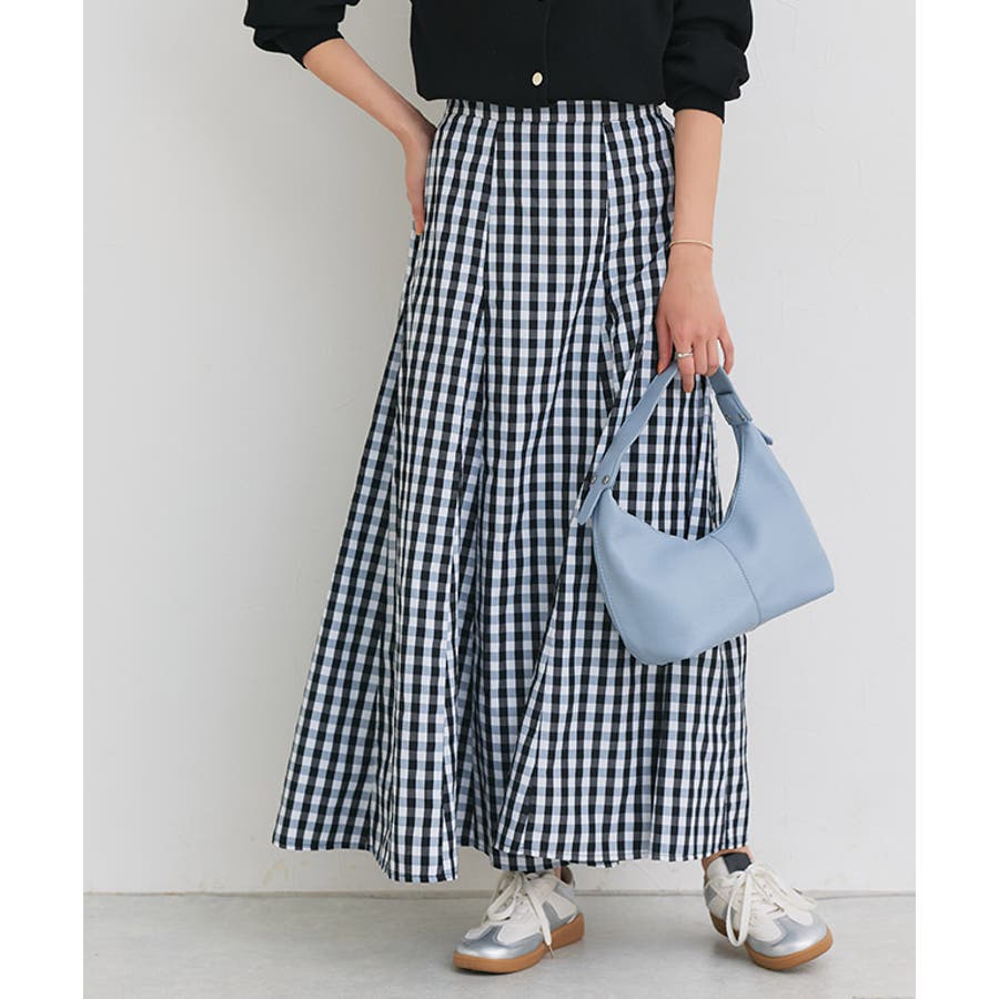 クラシカルなギンガムチェックが目を惹くフレアスカート。縦の切り替えを入れたパネルデザインで、広がりすぎずすっきりとしたフレアシルエットに仕上げました。腰まわりはすっきり見せつつ、自然に体型をカバー。動くたびに揺れるラインが女性らしさを引き立てます。シンプルなトップスを合わせるだけでコーデが決まる、主役級の一枚。きれいめからカジュアルまで、幅広いシーンで活躍します。