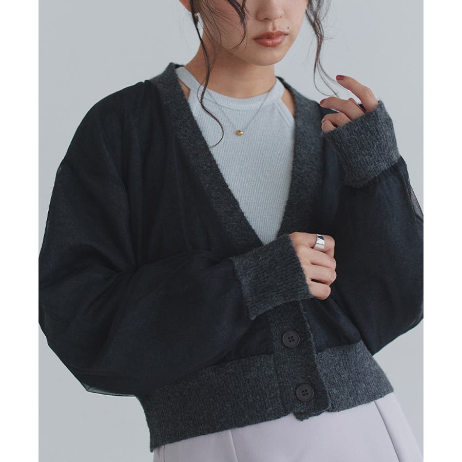 [ECLAM] チュールレイヤードニットカーディガン カーディガン