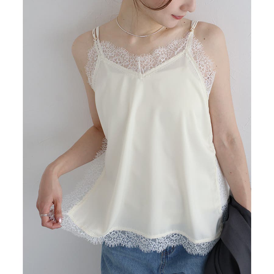 シーズンレスに活躍する旬顔レースキャミ。身幅には程よいゆとりがありインナーを重ねてももたつきにくいサイズ感に仕上げました。肩紐はアジャスター付きでお好きな丈感に調整できるところも嬉しいポイント。