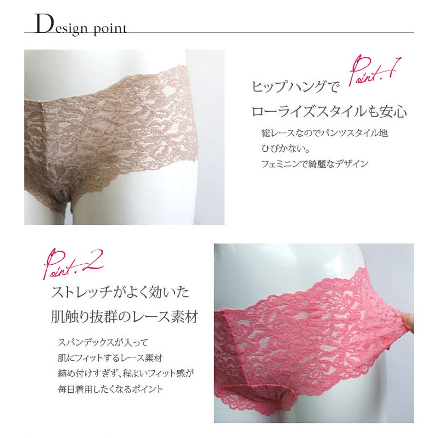 投稿日:2022.07.17全部がレースになってるからセクシーだしかわいい。シンシユクセイもあって、ふだん使いにちょうど良かった。ゴムのキツさがないのでラクに着れるところも良かった。