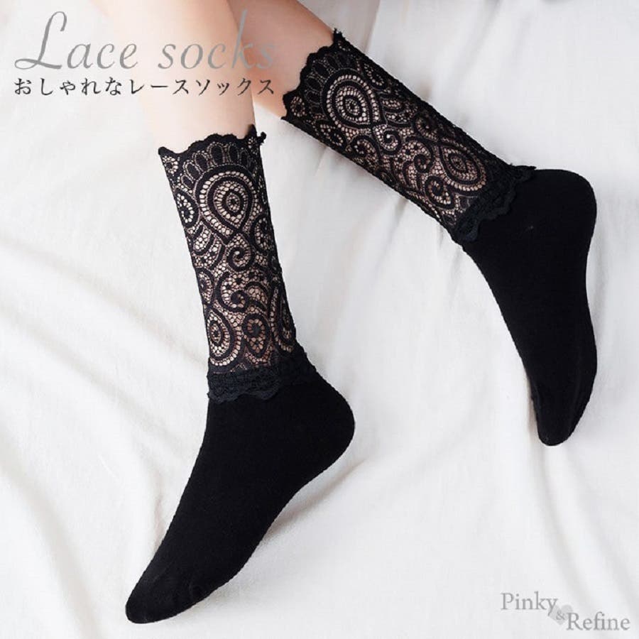 大人気のレース靴下♪パンプスやスニーカーにレースがお洒落れ!!1足は欲しい必需品です。サイズ:M-Lカラー:ブラック