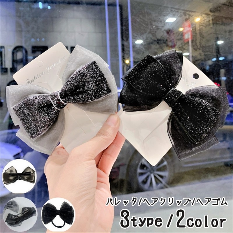 | カラー×タイプ | ブラック×クリップ / ブラック×ゴム / ブラック×バレッタ / グレー×クリップ / グレー×ゴム / グレー×バレッタ |