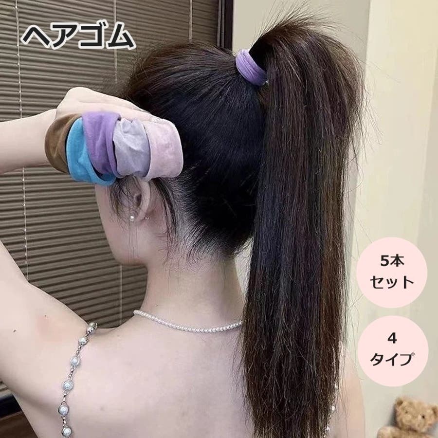 幅広タイプのレディース用ヘアゴム5本セットです。