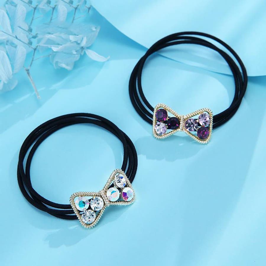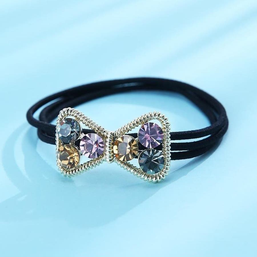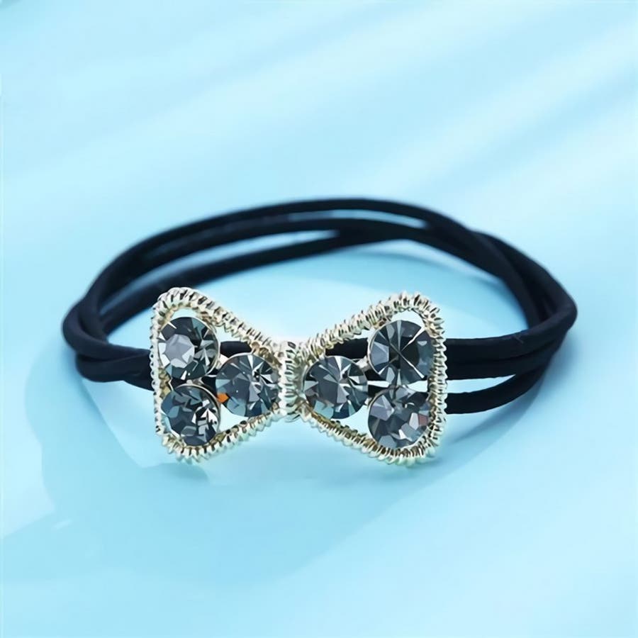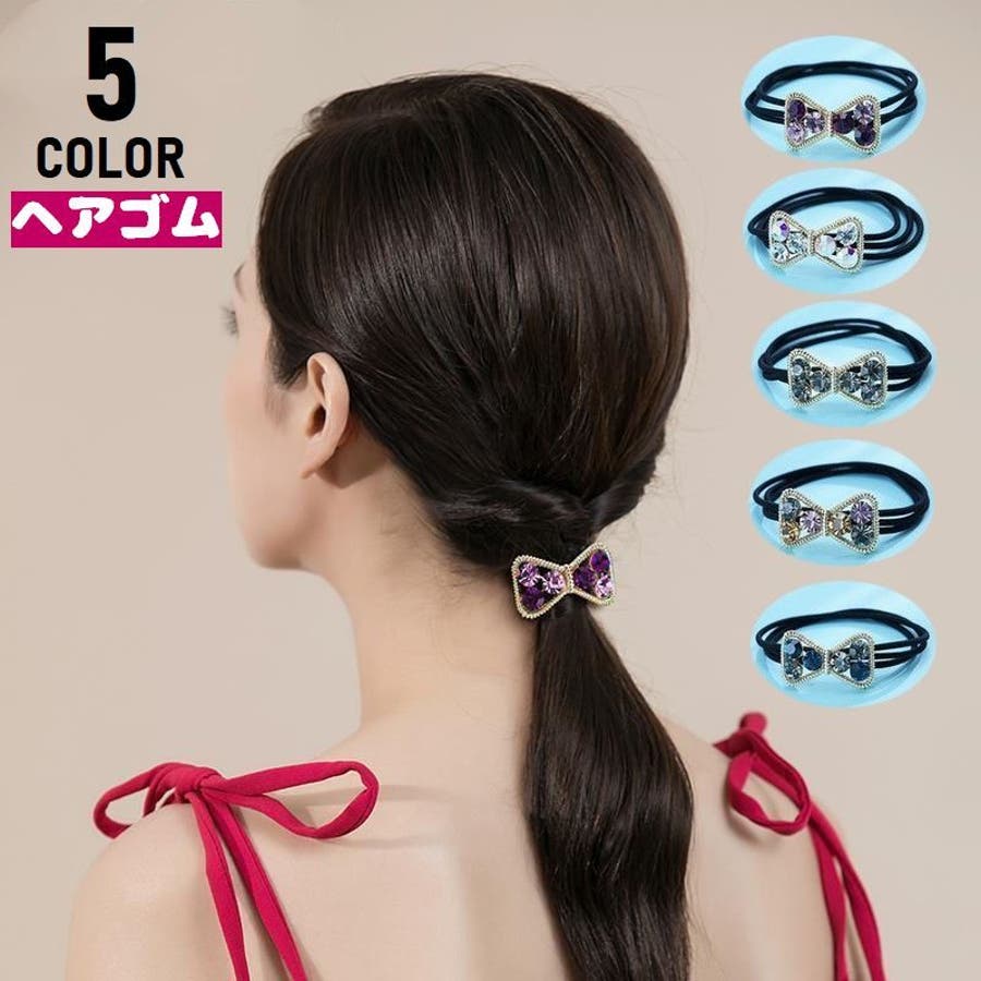 リボン型とラインストーンがおしゃれなヘアゴムです。