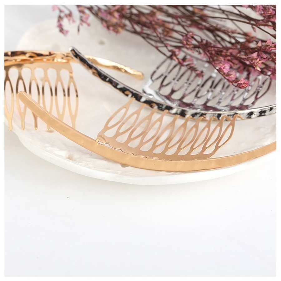 光沢感のあるメタル製のレディース用ヘアコームです。