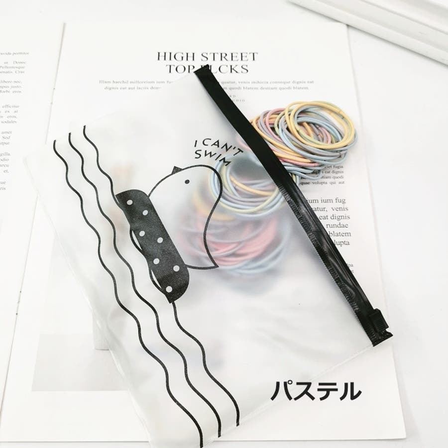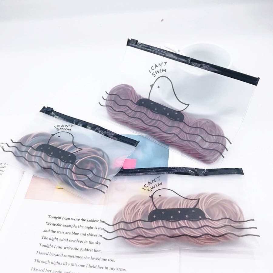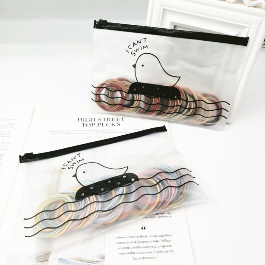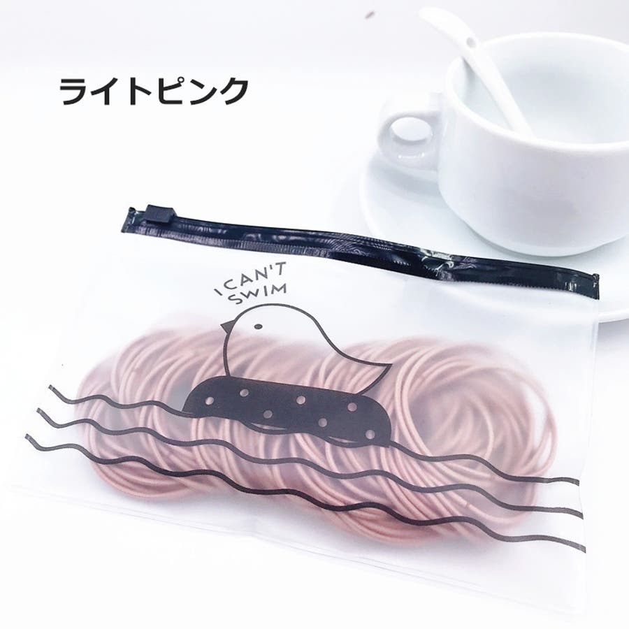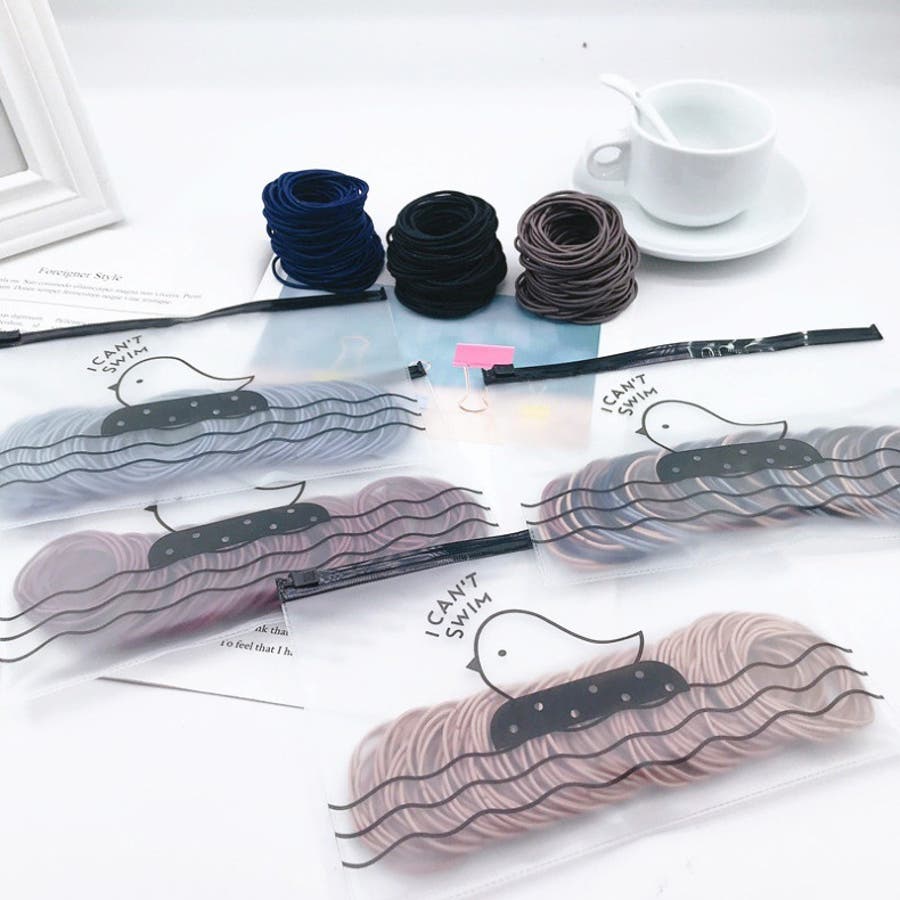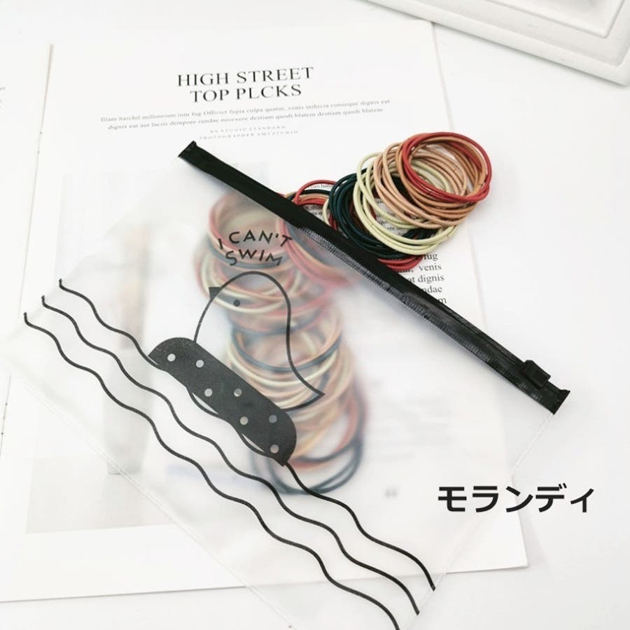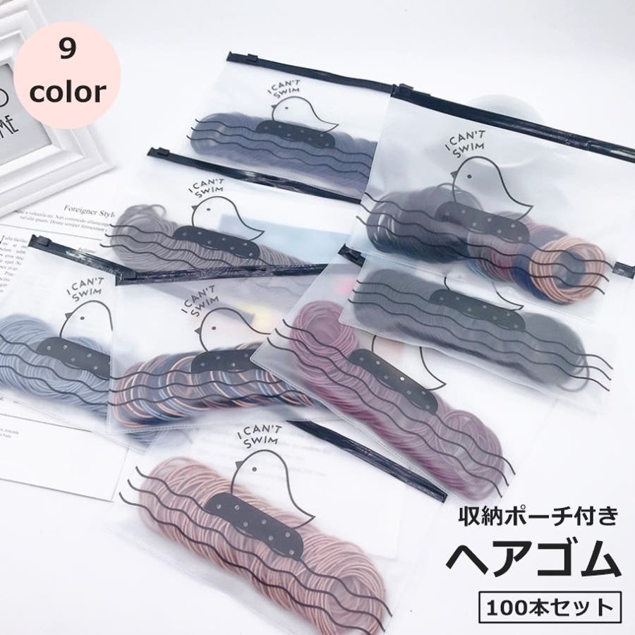 シンプルなデザインの、収納ポーチ付きヘアゴム100本セットです。