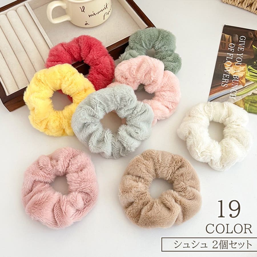 おしゃれなカラーが豊富な、レディース用シュシュ同色2個セットです。