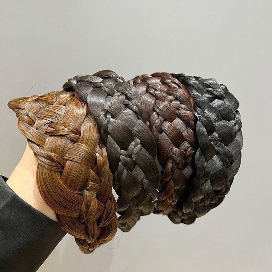 カチューシャ 三つ編み フェイクヘア