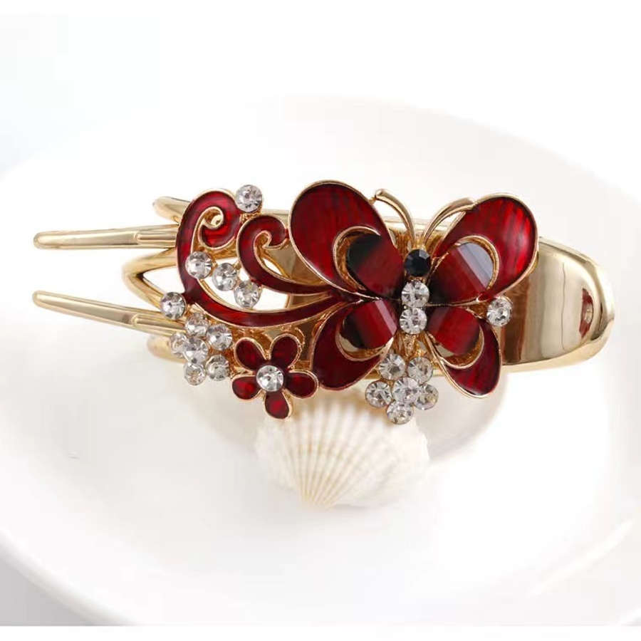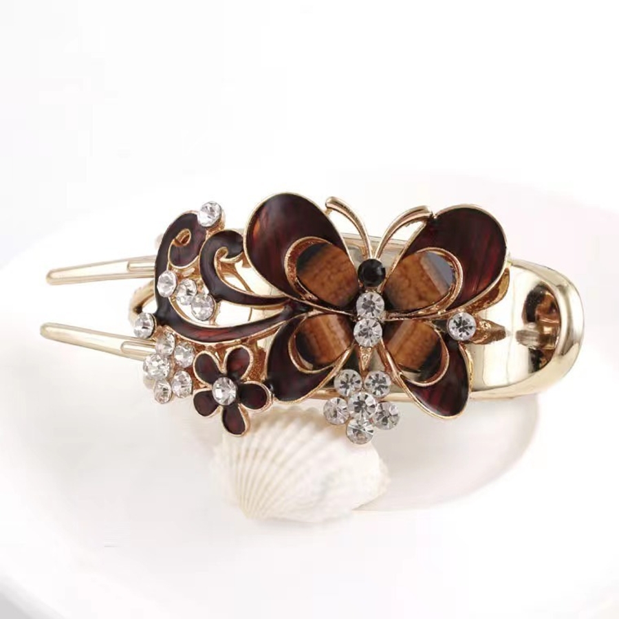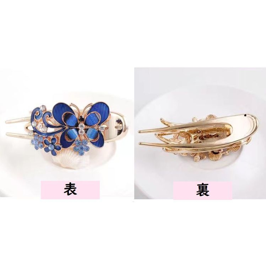 蝶々のデザイン、色合いはとてもよいのですが裏の留め具が大きいです。クリップタイプは好きではないのですが、デザインが良くて購入してしまいました。金具自体大きい割には軽く、髪もたくさん掴んでくれるので使い勝手は良いとは思います。でも横から見た時の金具の大きさは、半端ないです。蝶々のモチーフももう少し大きくても良いなと思いましたし、これはバレッタで作って欲しかった!デザイン、色合いはとても良いですよ。