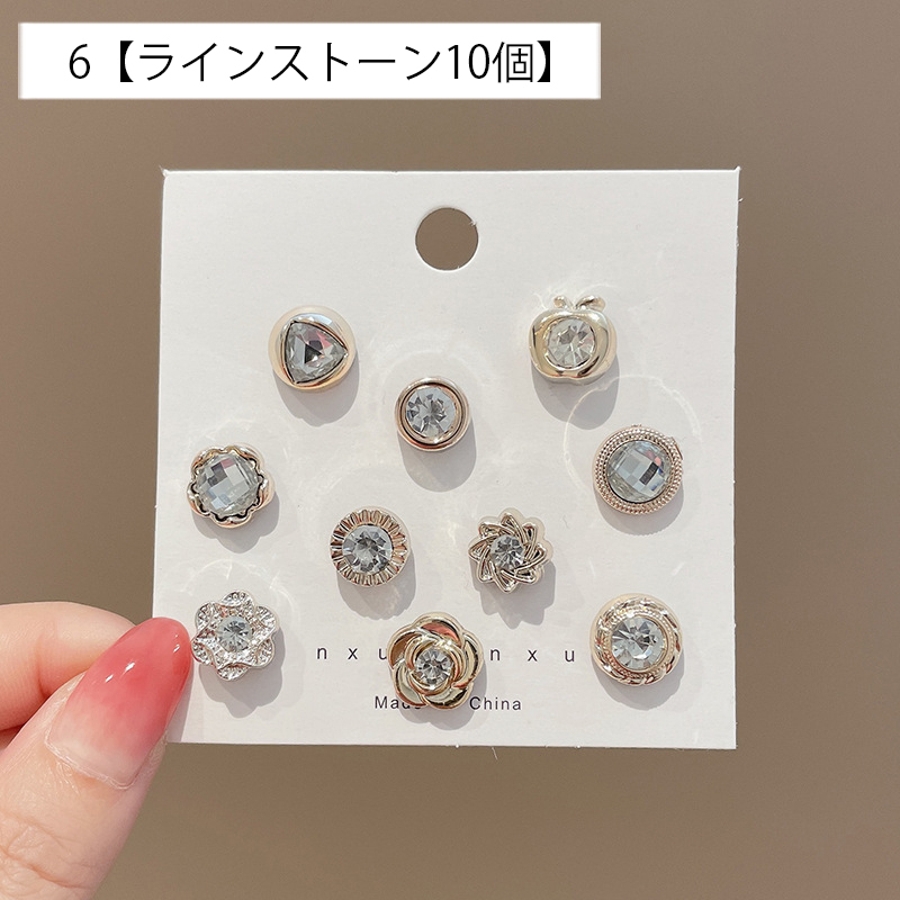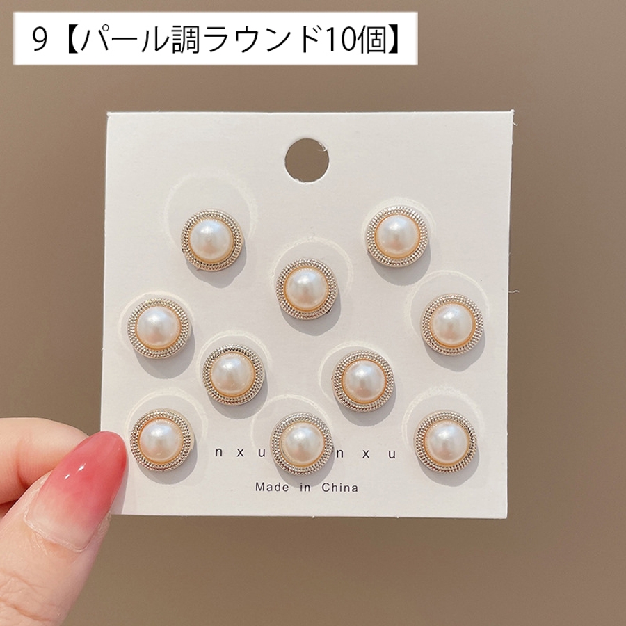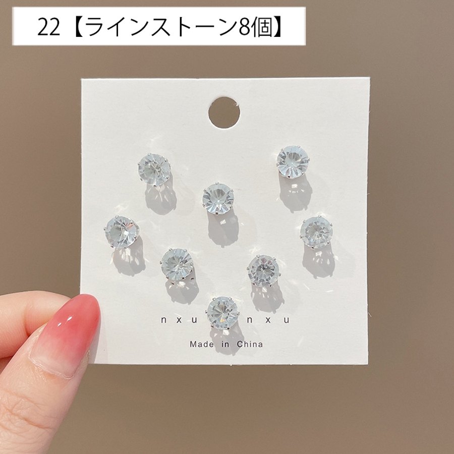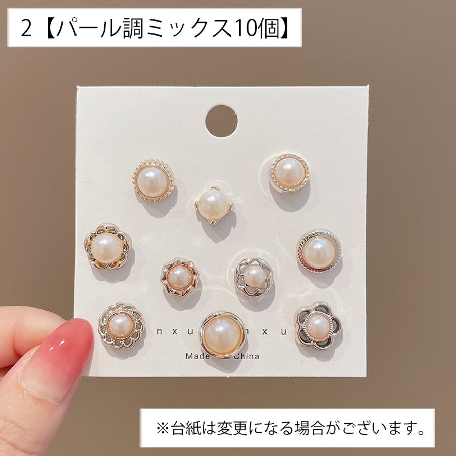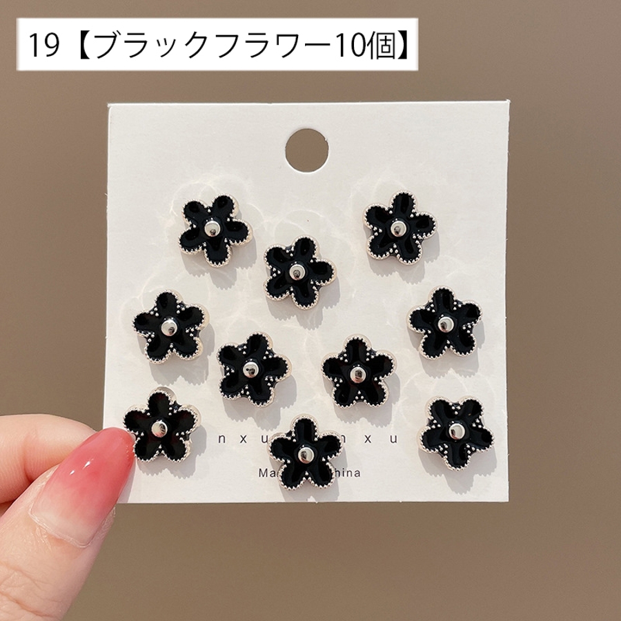 | デザイン | 18【パール調フラワー10個】 / 19【ブラックフラワー10個】 / 2【パール調ミックス10個】 / 22【ラインストーン8個】 / 6【ラインストーン10個】 / 9【パール調ラウンド10個】 |