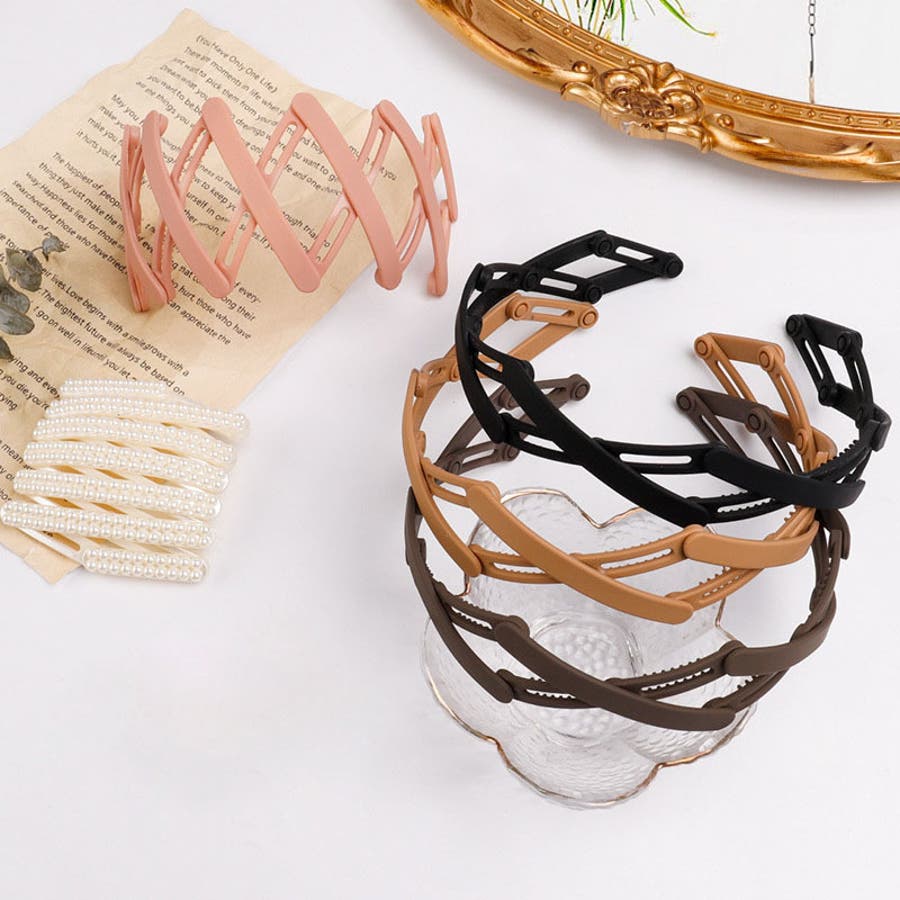 | カラー | アズキ / ブラック / ブラウン / ダークブラウン / グレー / 三つ編み×ブラック / 三つ編み×ダークブラウン / 三つ編み×グレー / 三つ編み×カーキ / 三つ編み×ピンク / フェイクパール |