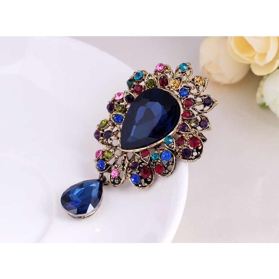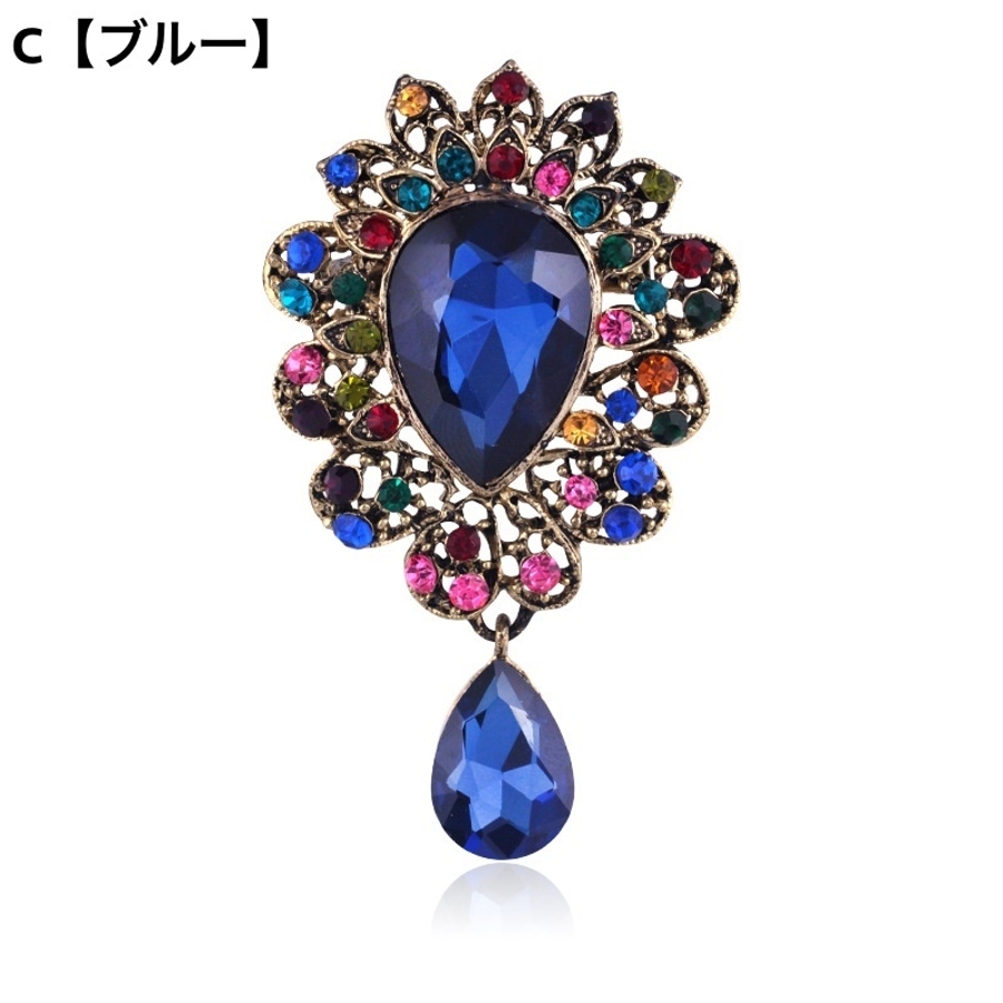 投稿日:2023.02.16とても豪華な大きめのブローチですいろんな色が輝いていて中央にサファイア色の濃いブルーがとても綺麗ですとても素敵です