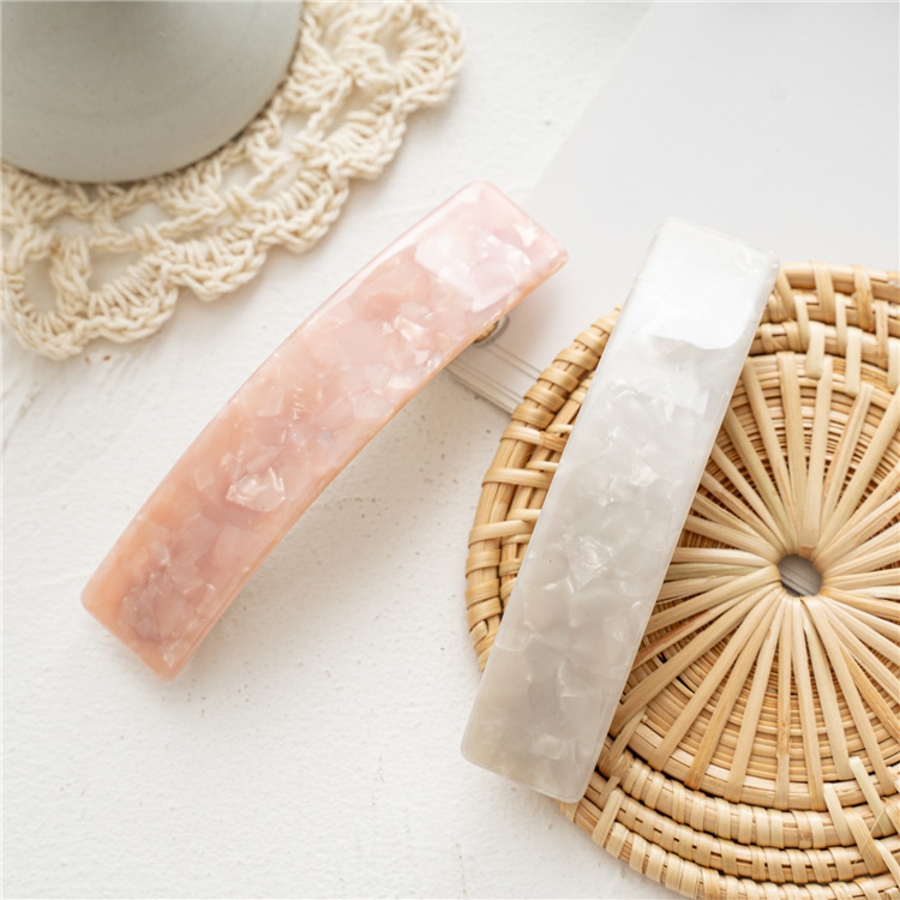 カラフルを購入しました。色が画像通り鮮やかで、シンプルな形ながら存在感しっかりあって華やかになります。髪の量が割と多い方ですが、一つに束ねた状態で留められます。