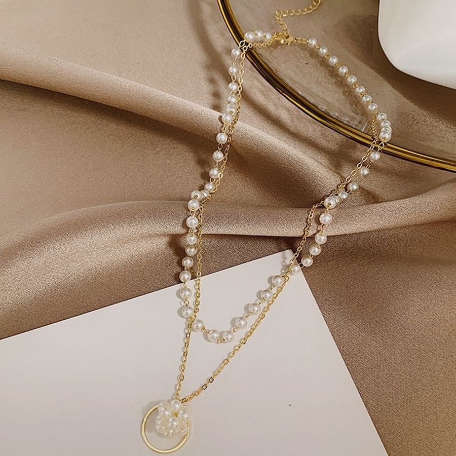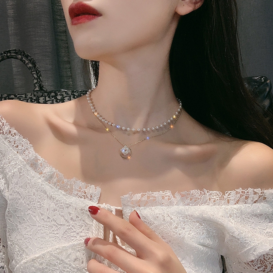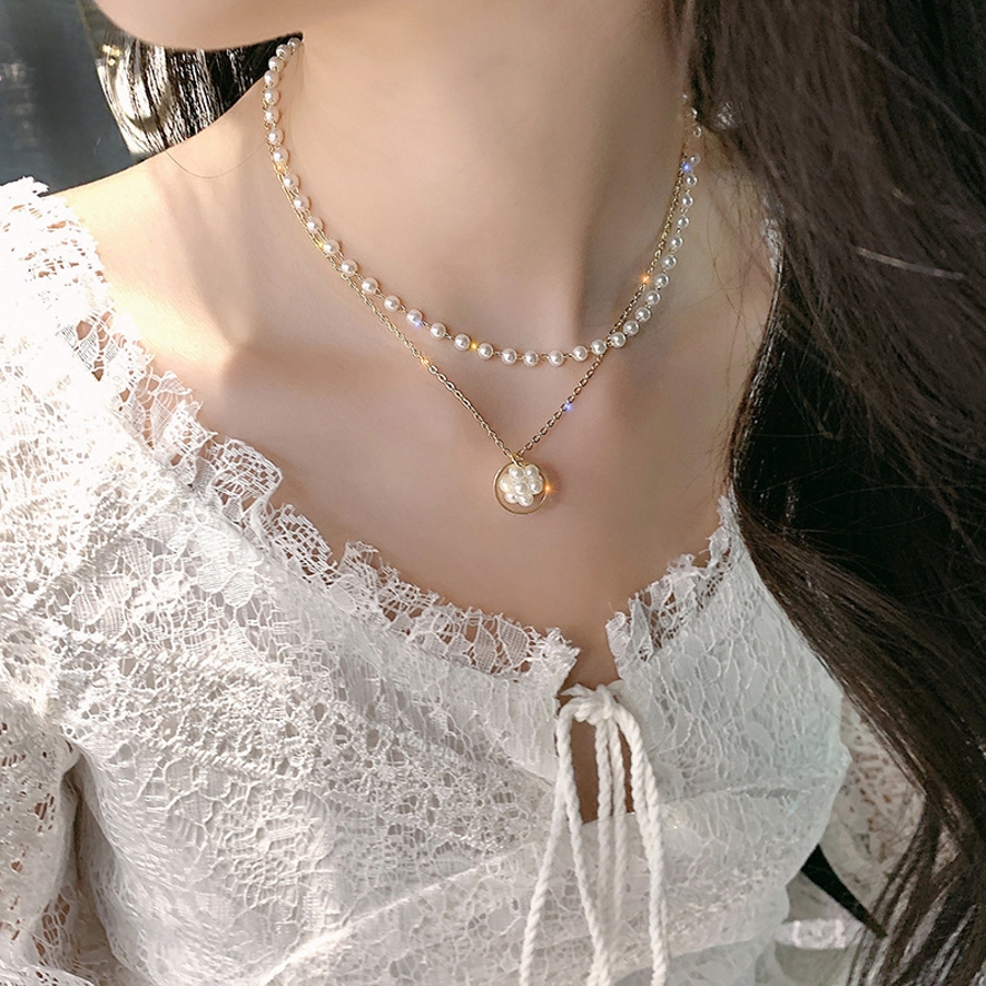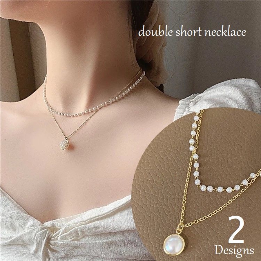 パール調ネックレス 2連チョーカー ペンダント