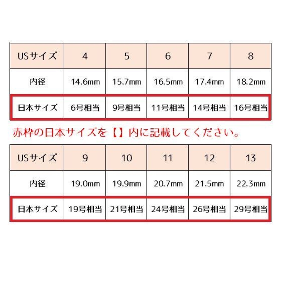 | サイズ | 10【21号相当】 / 11【24号相当】 / 12【26号相当】 / 5【9号相当】 / 6【11号相当】 / 7【14号相当】 / 8【16号相当】 / 9【19号相当】 |