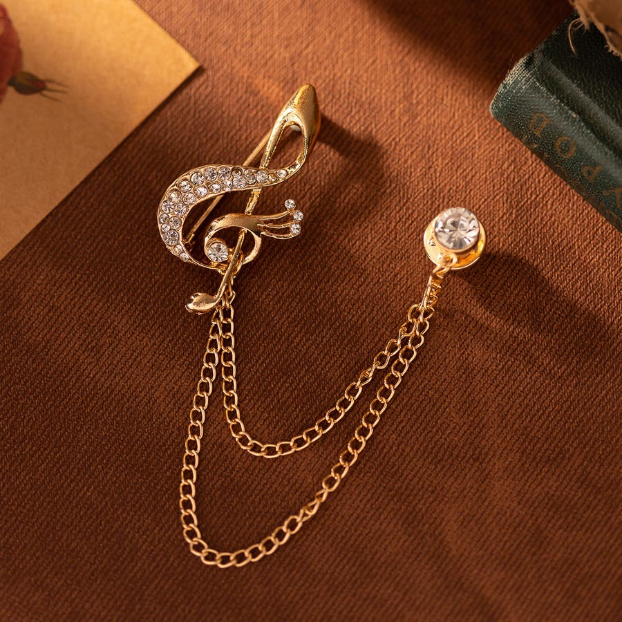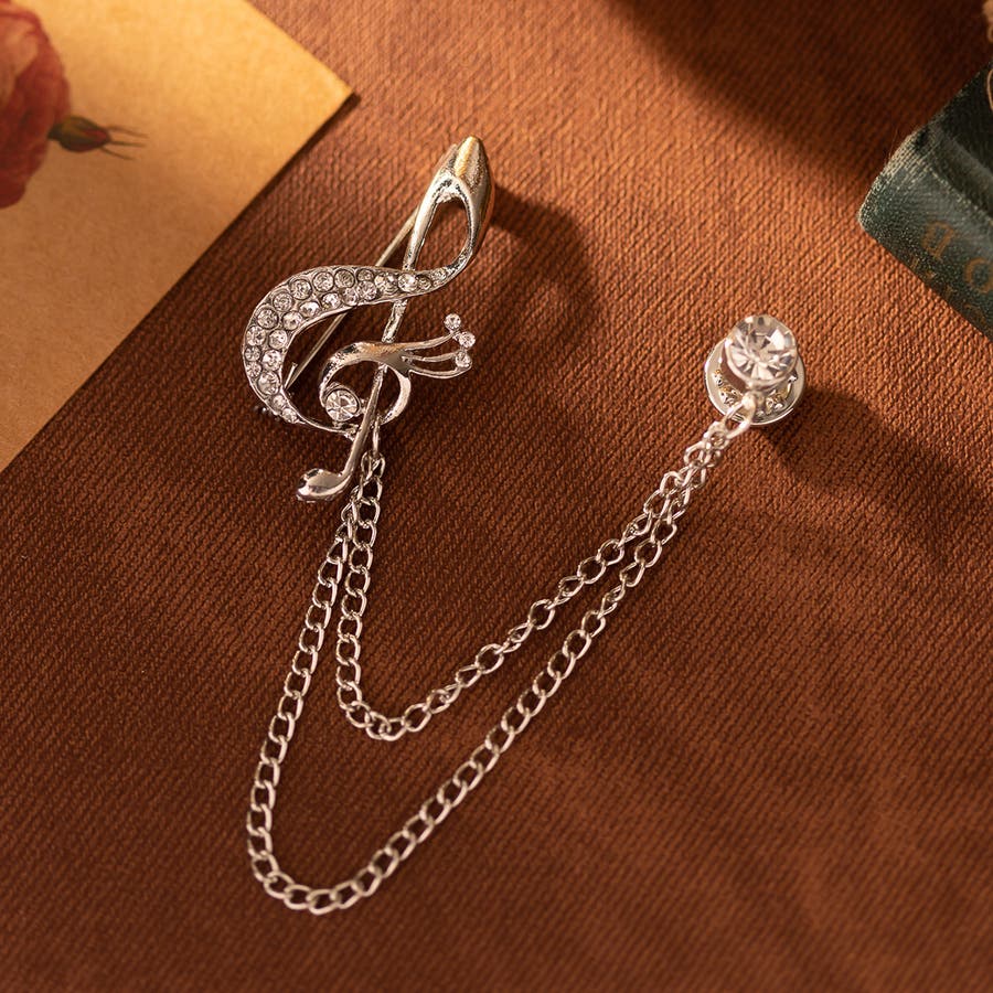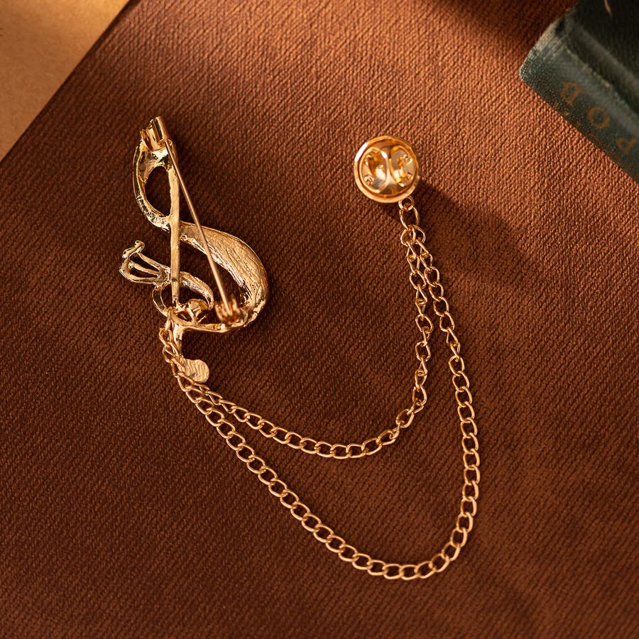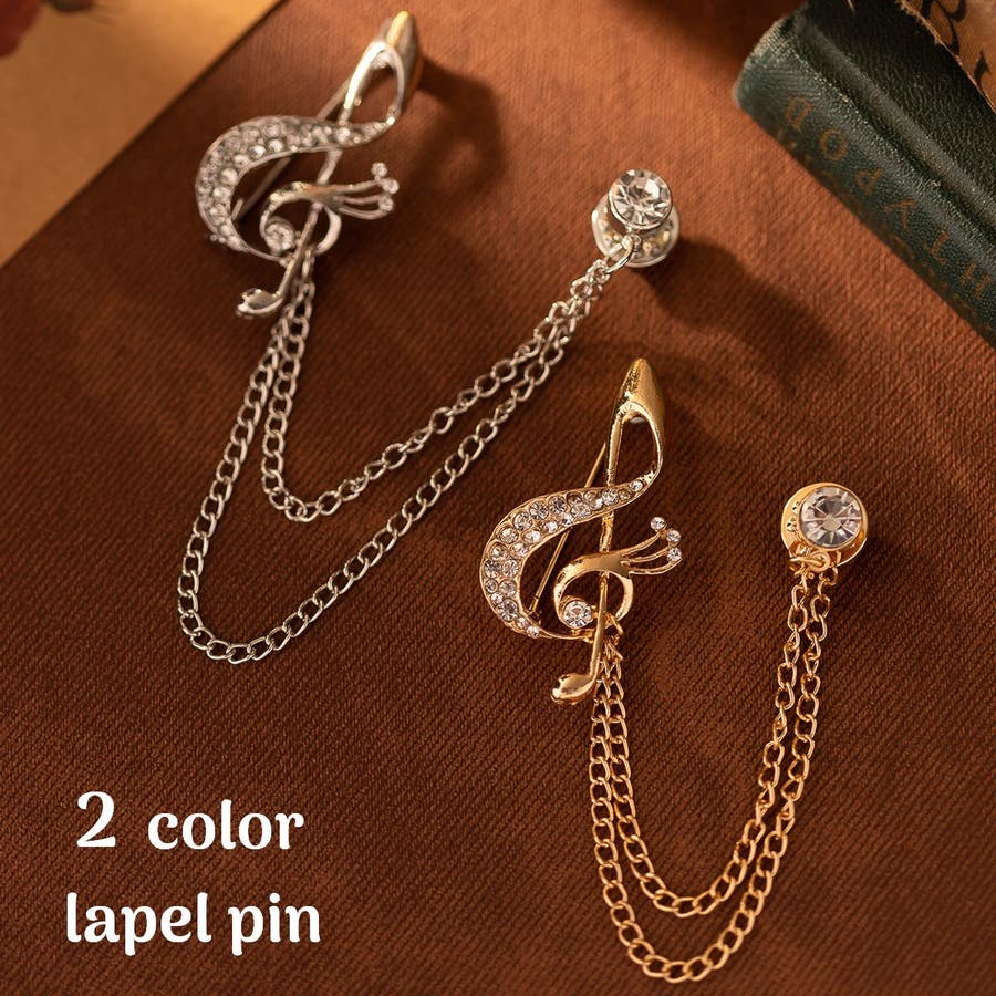 音符のチャームがおしゃれなラペルピンです。