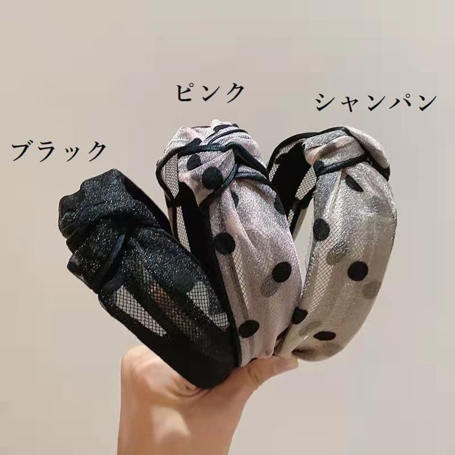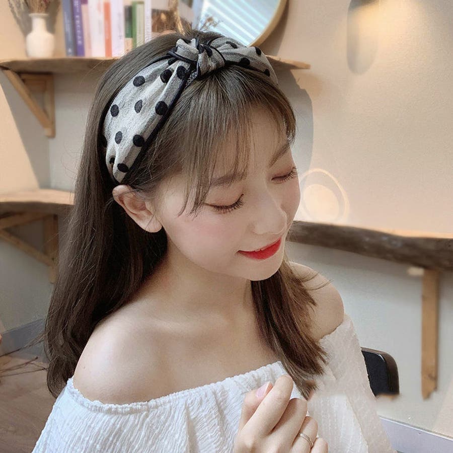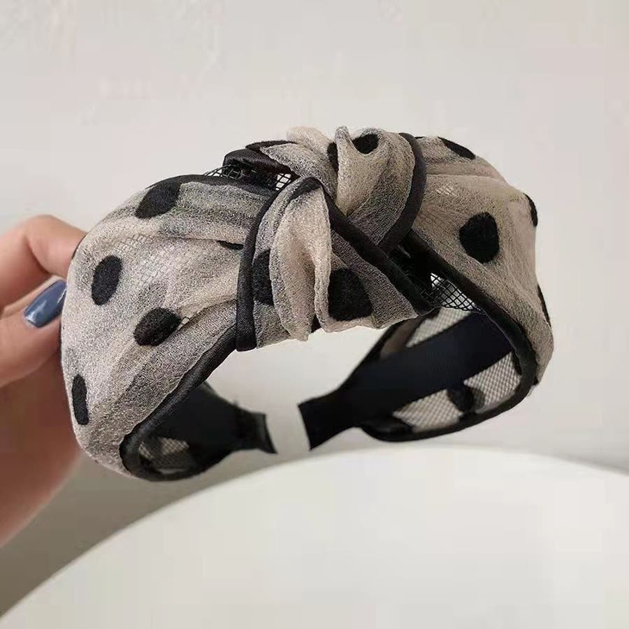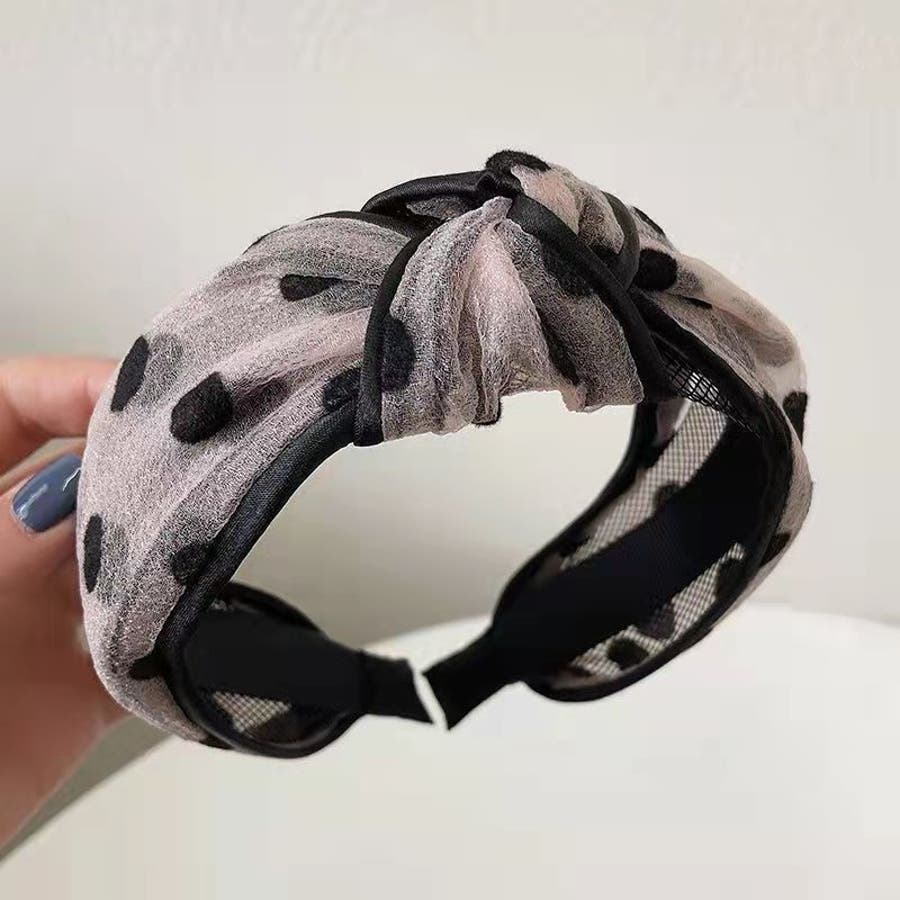 結び目デザインのレース生地と水玉柄が可愛い、レディース用カチューシャです。