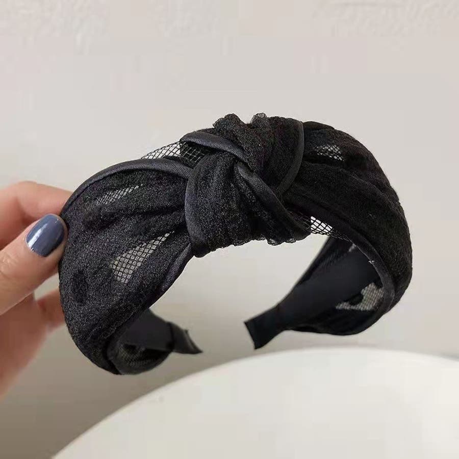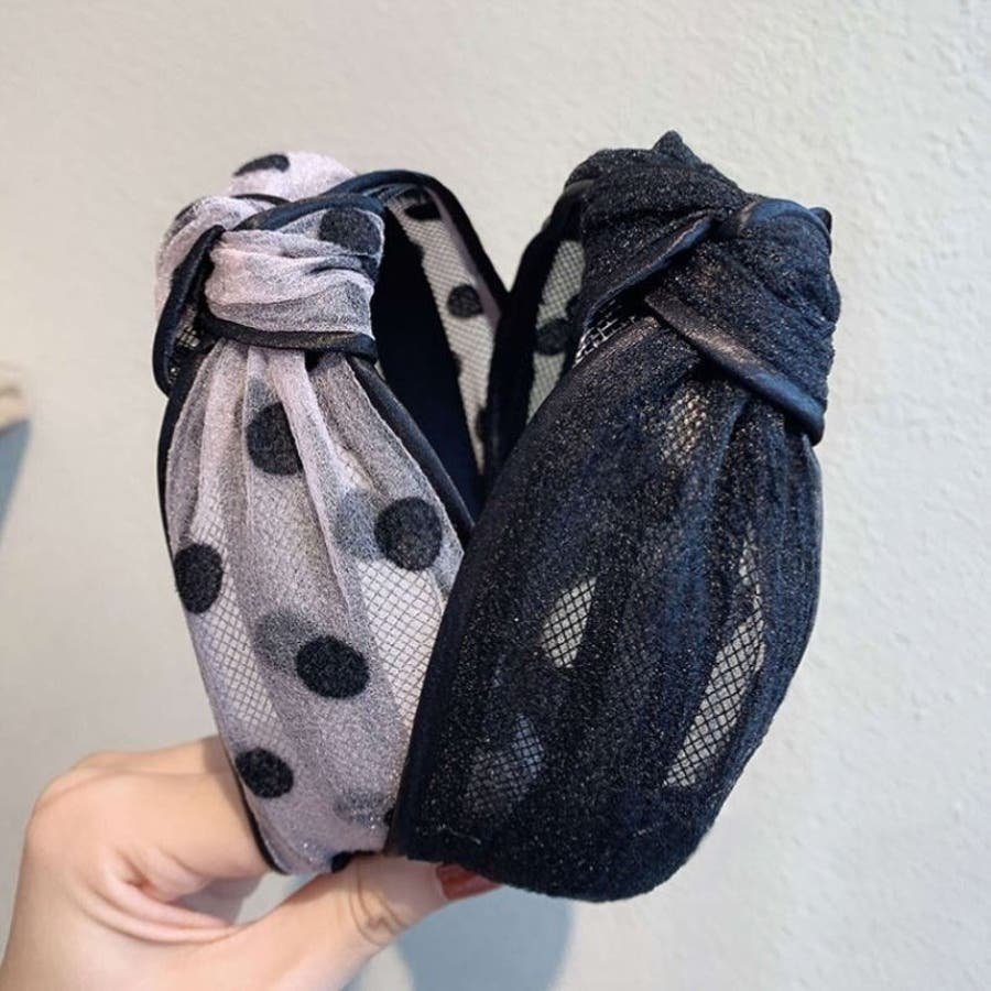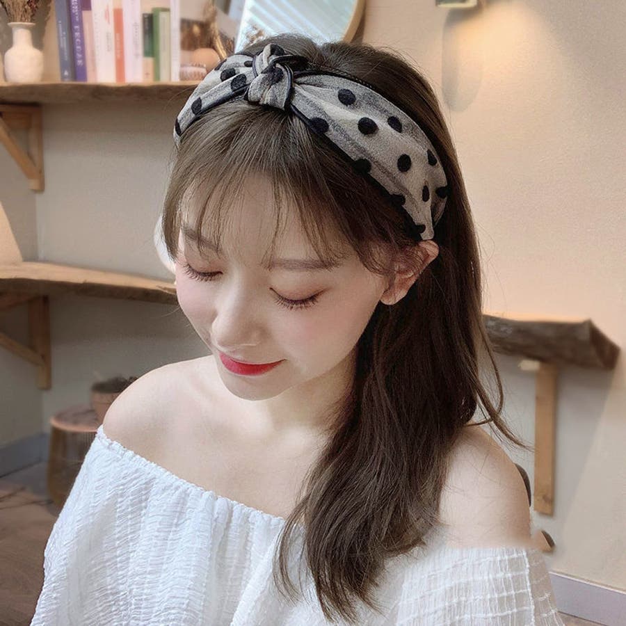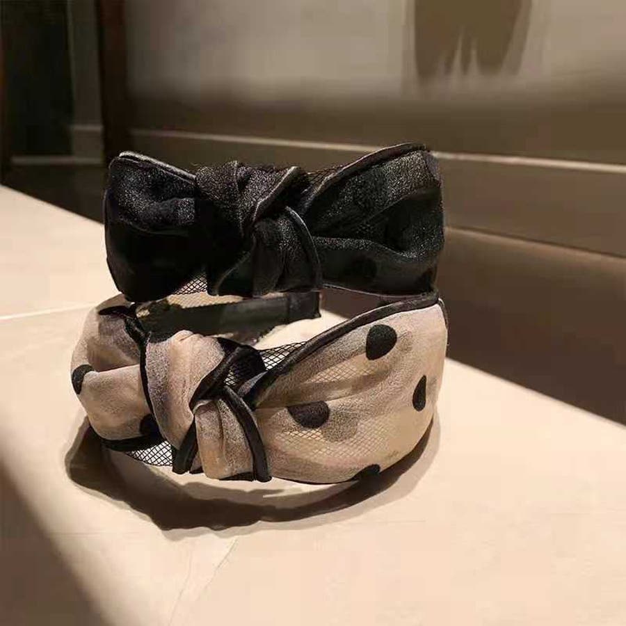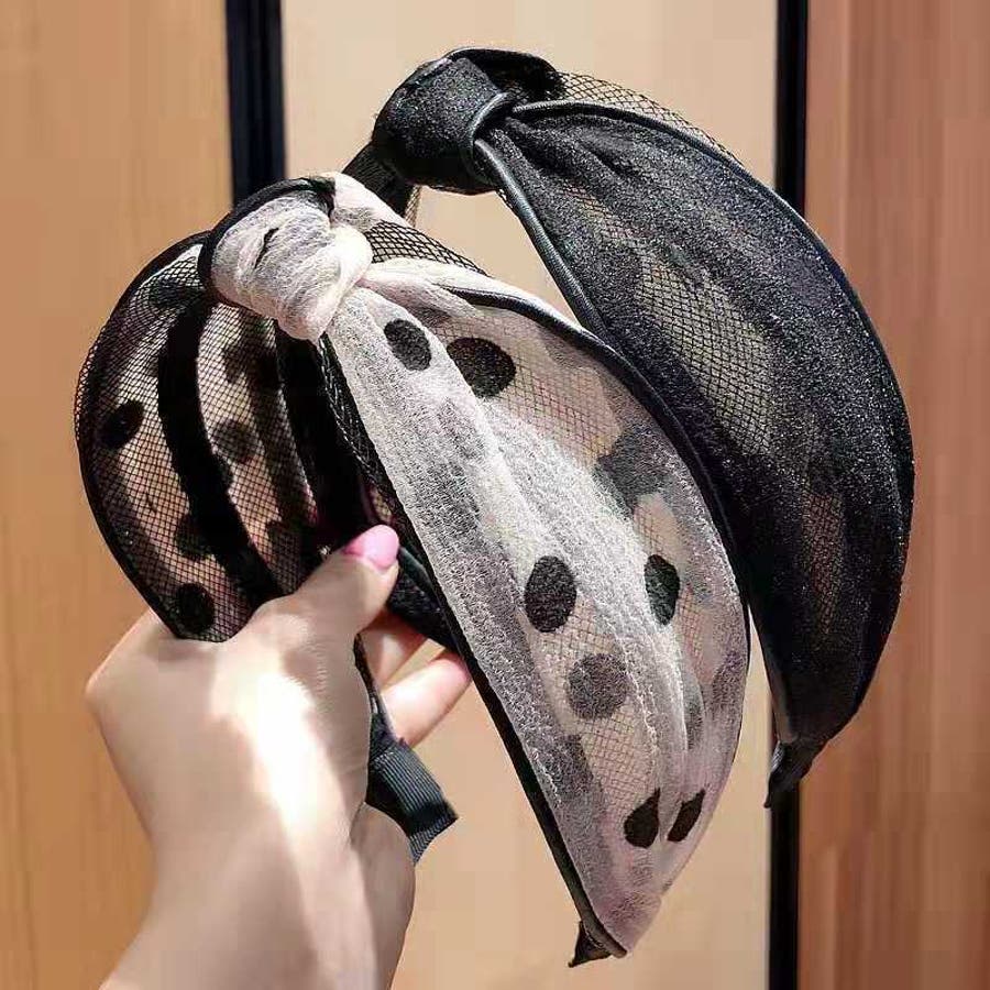 結び目デザインのレース生地と水玉柄が可愛い、レディース用カチューシャです。