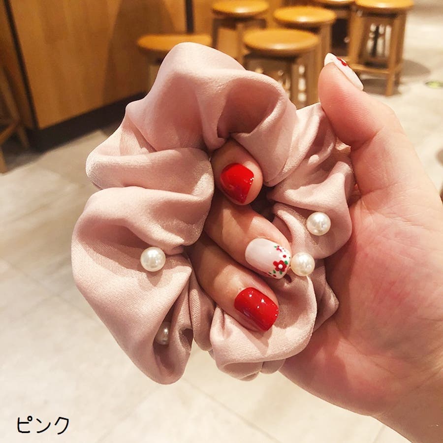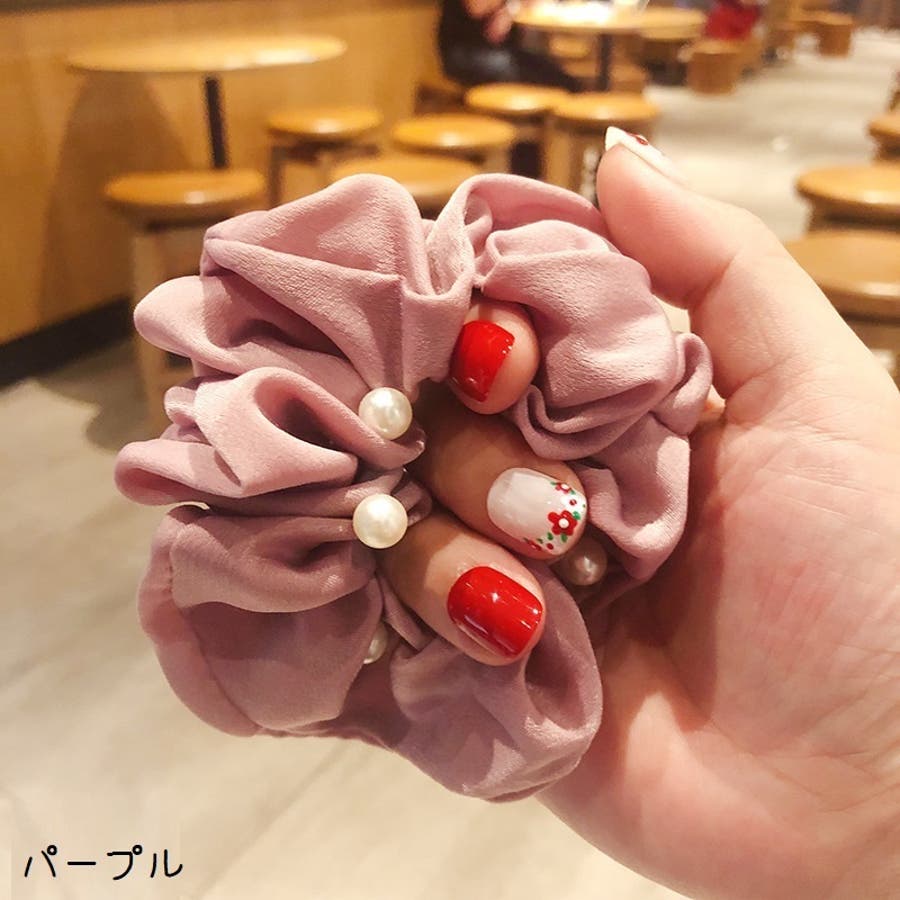 投稿日:2022.12.10かわいいパープルのシュシュに、パールが付いているので、シュシュで結ぶだけで、おしゃれに可愛くなります。パールもしっかりついてるので、外れる心配もないです。色違いも欲しいです。