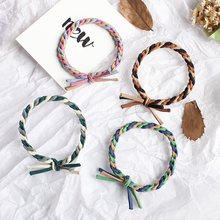 編み込み三連型のレディース用ヘアゴムです。