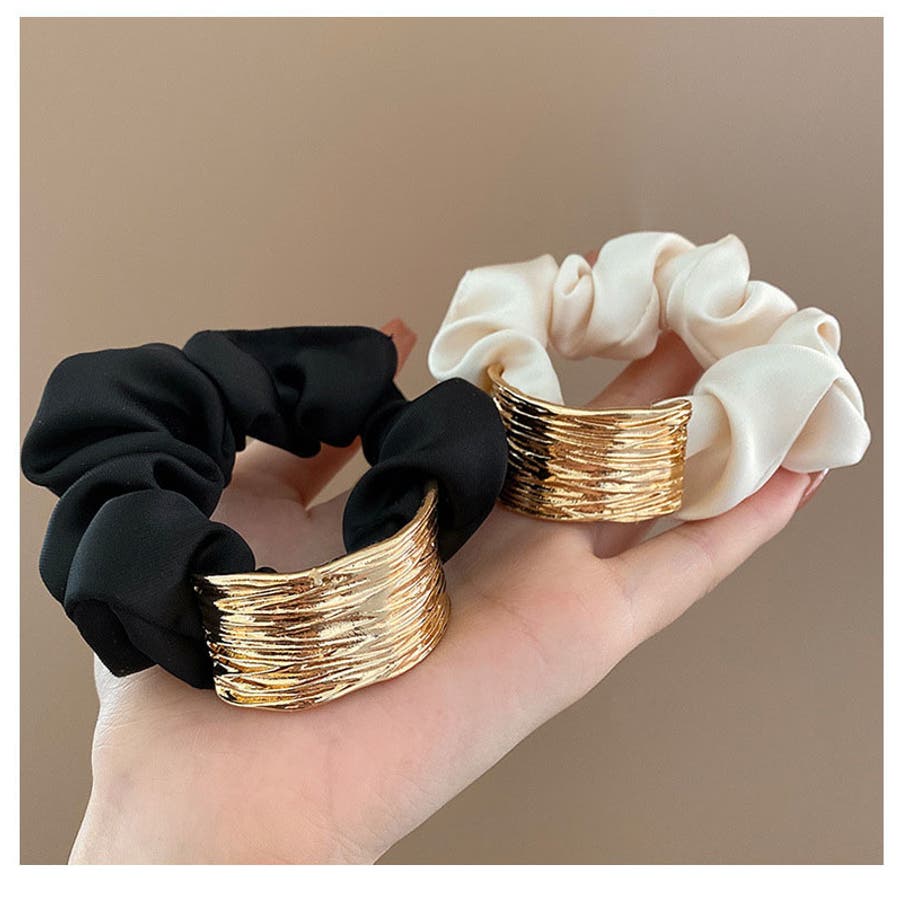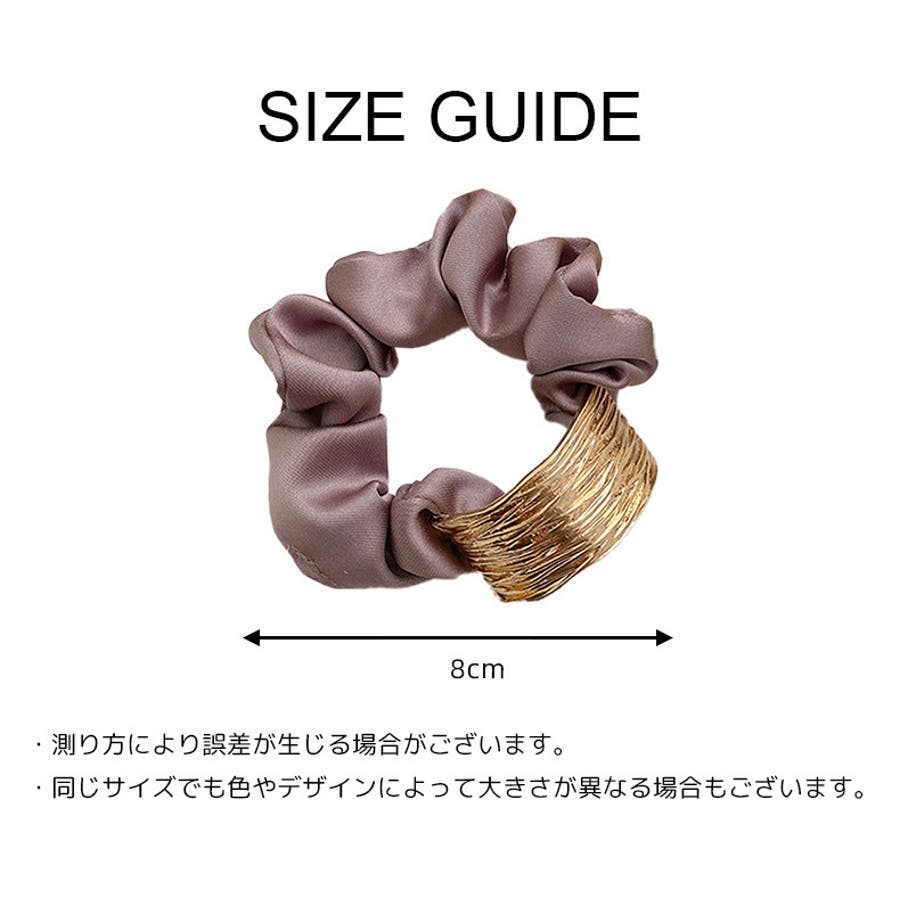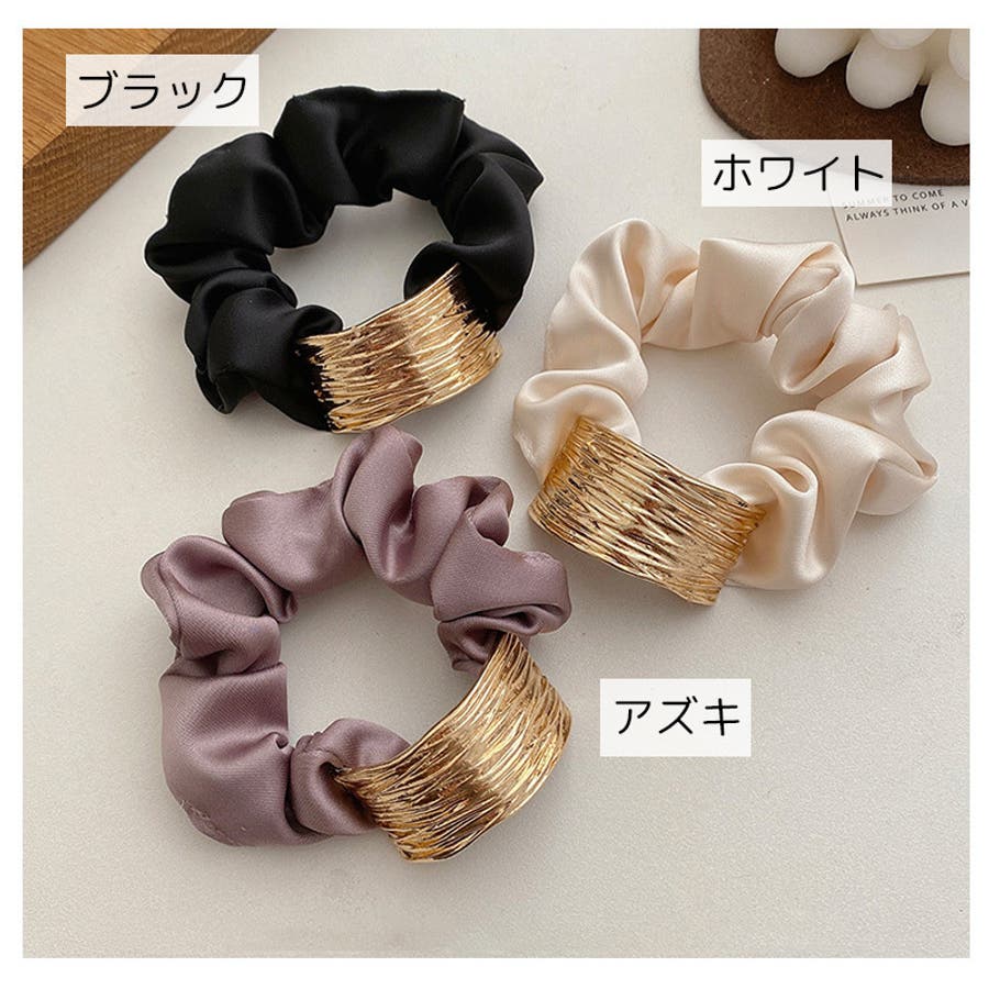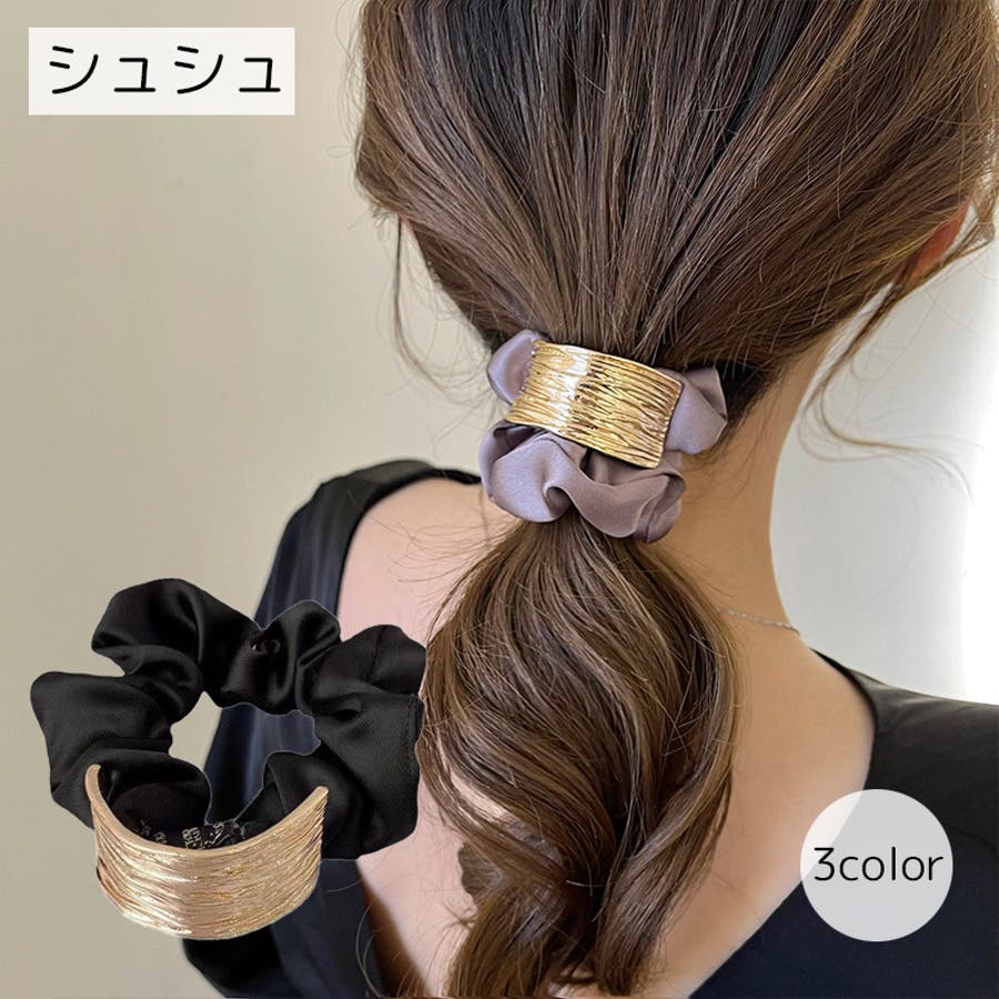 シュシュに取り付けられたゴールドカラーのワンポイントが、ただ髪をまとめるだけではなく、相手の印象に残りやすい優れたアイテムになっています。