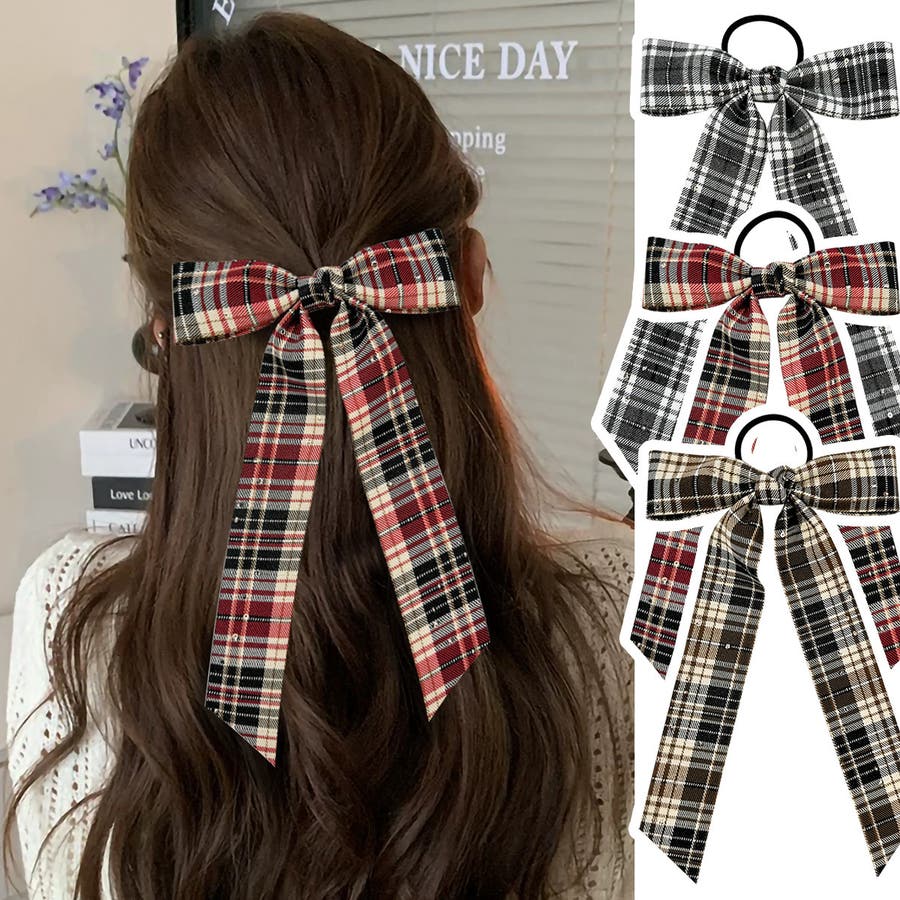 チェック柄のロングリボンがとってもかわいい♪