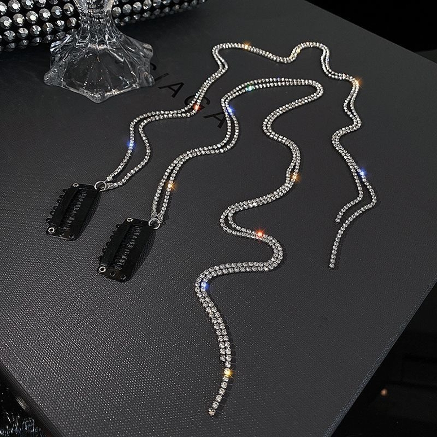 ラインストーンのチェーンが2本ついたクリップ×4個セットです☆