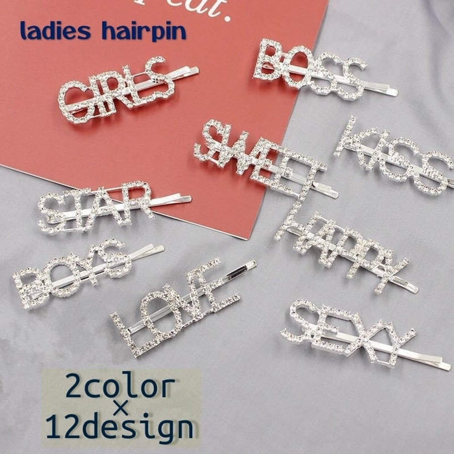ヘアピン 英字 ラインストーン