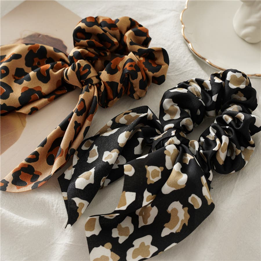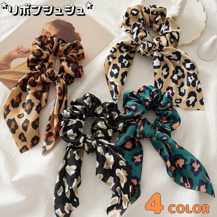 ヒョウ柄がおしゃれなリボンシュシュです。