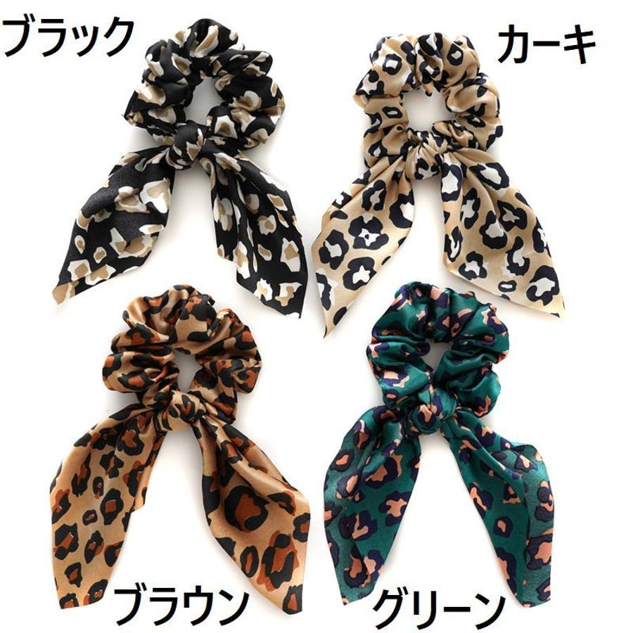 紐が後ろで揺れてかわいいです。豹柄もいやらしくなくて大人でも使えます。ポニーテールのちょっとしたワンポイントになります。