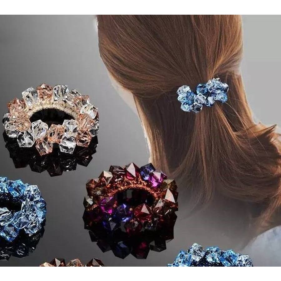 シュシュ クリスタル風 ヘアゴム