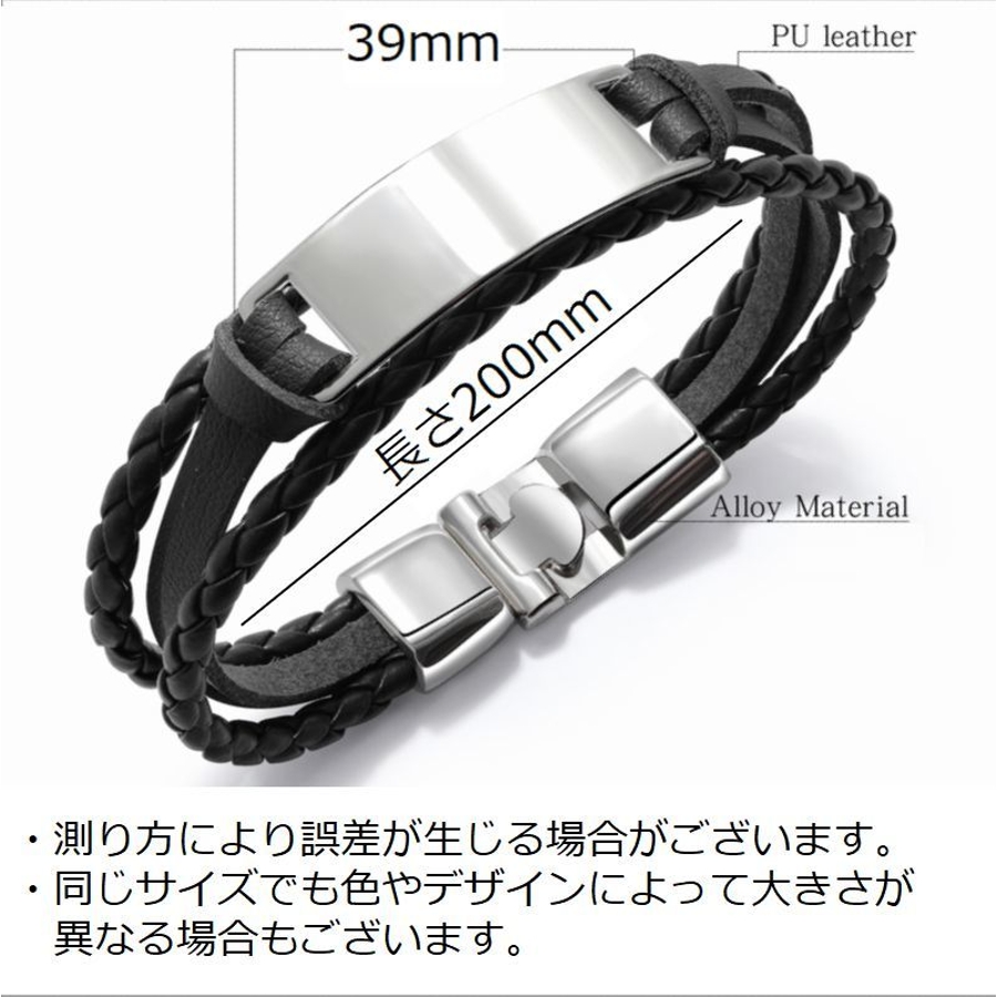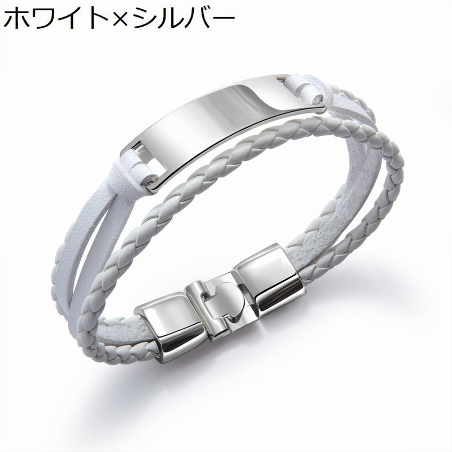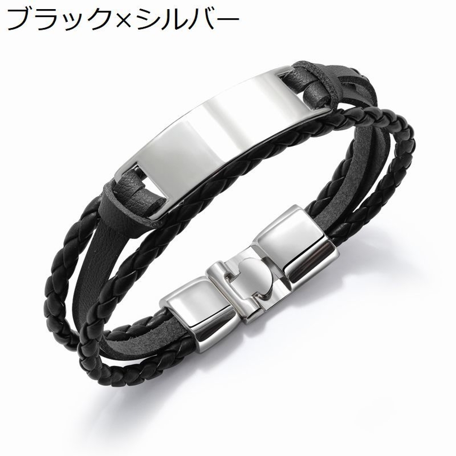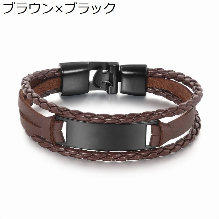 メタルプレート付きのメンズ用フェイクレザーブレスレットです。