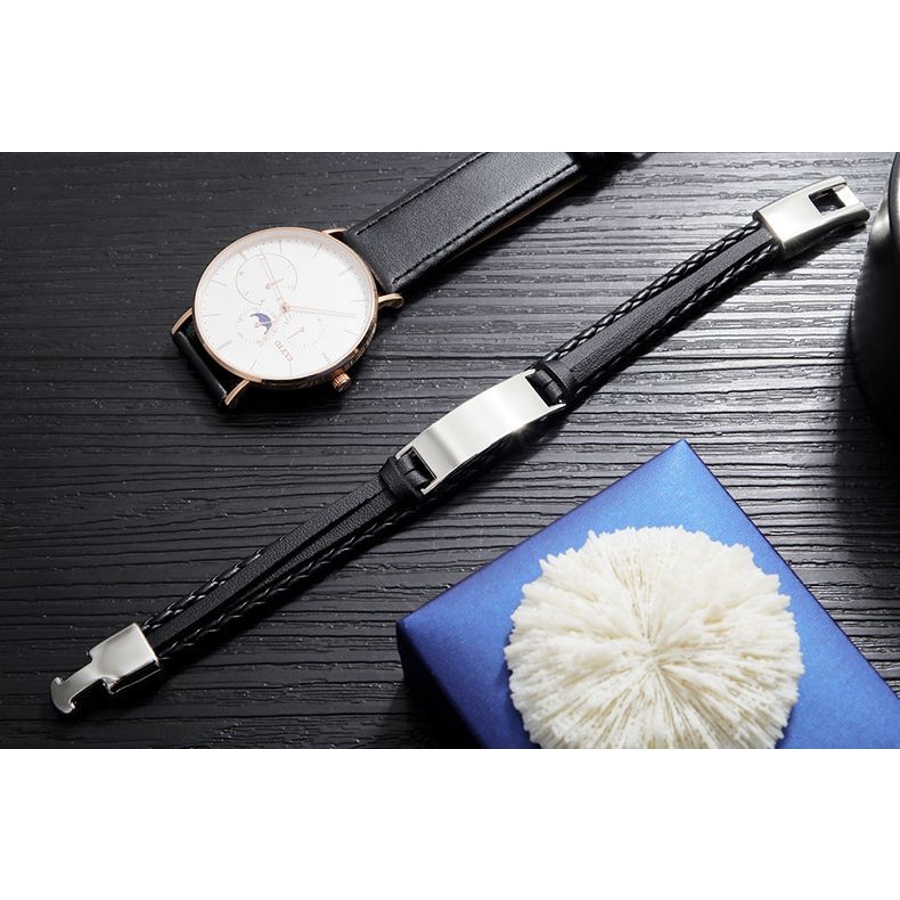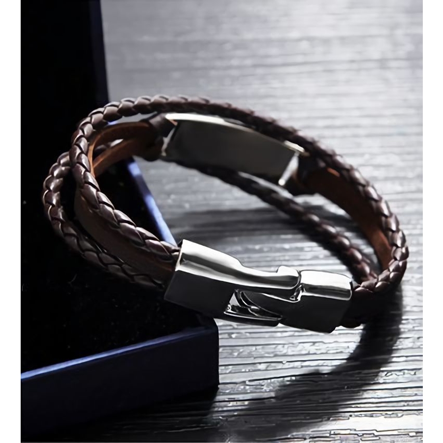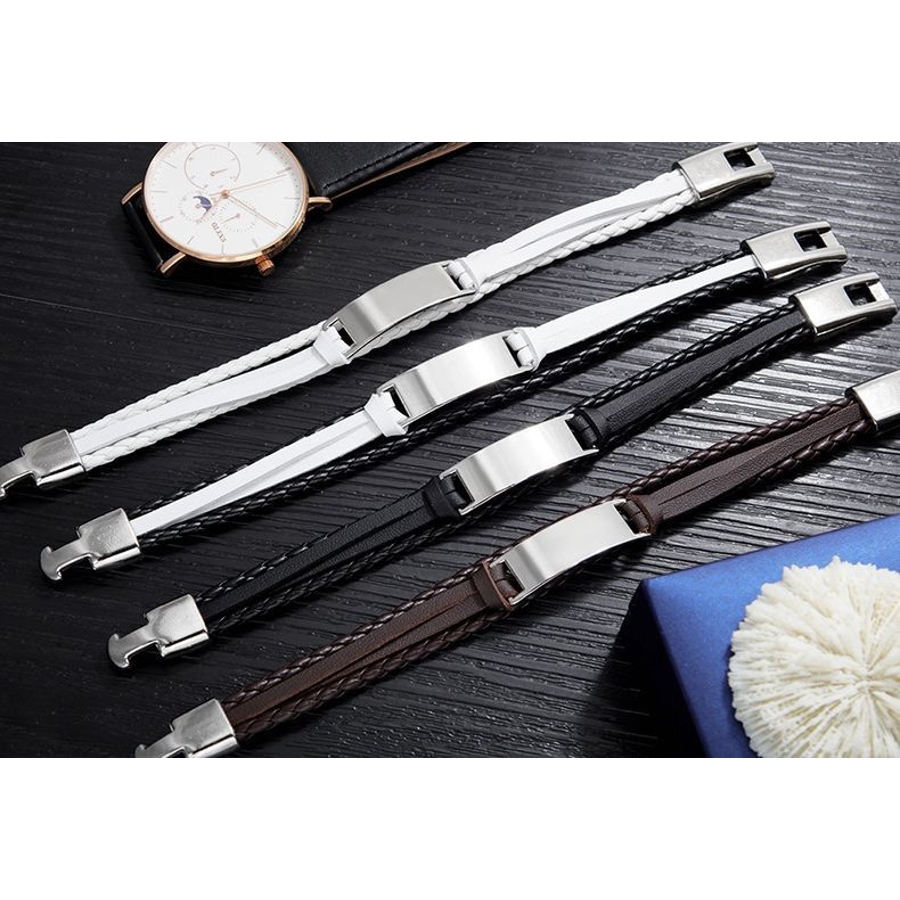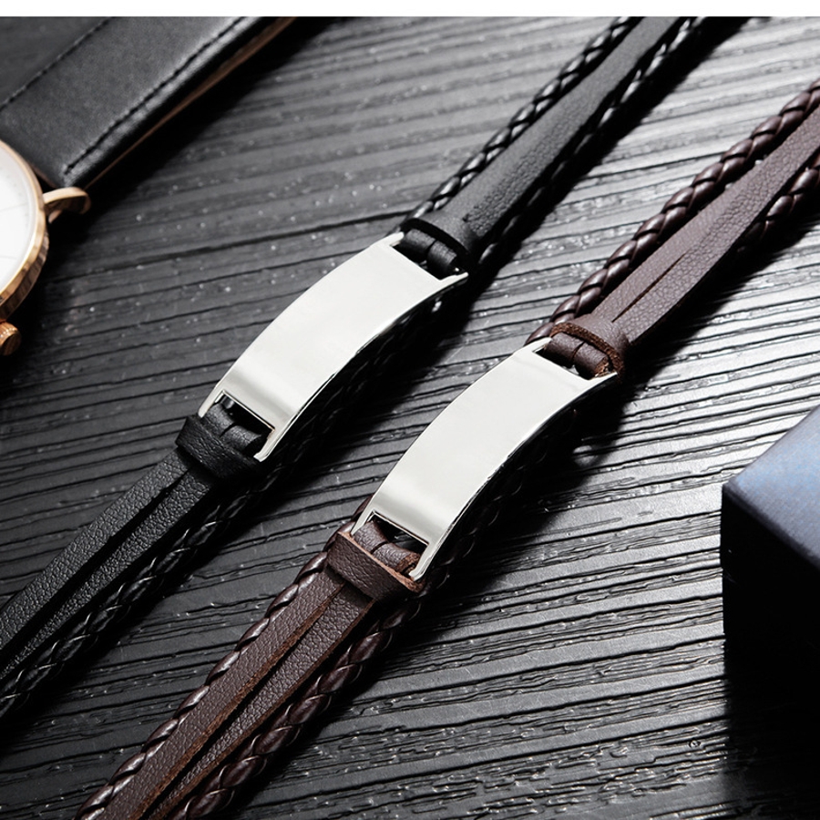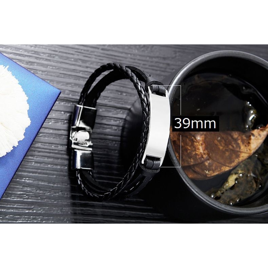メタルプレート付きのメンズ用フェイクレザーブレスレットです。