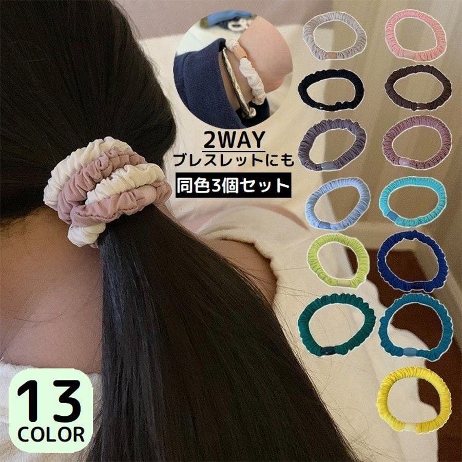 スリムデザインのレディース用シュシュ同色3個セットです。