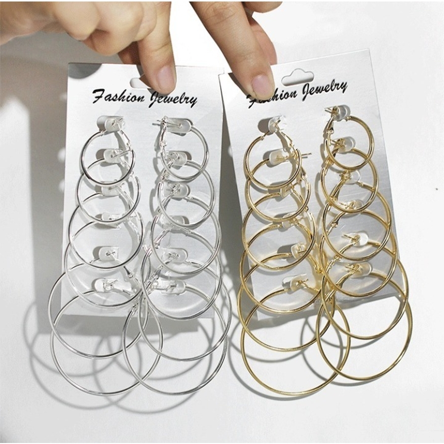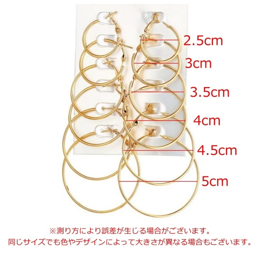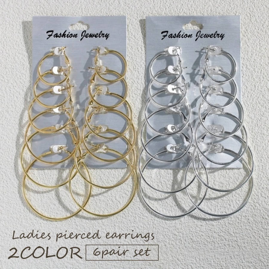 サイズ違いのレディース用フープピアス、お得な6ペアセットです。