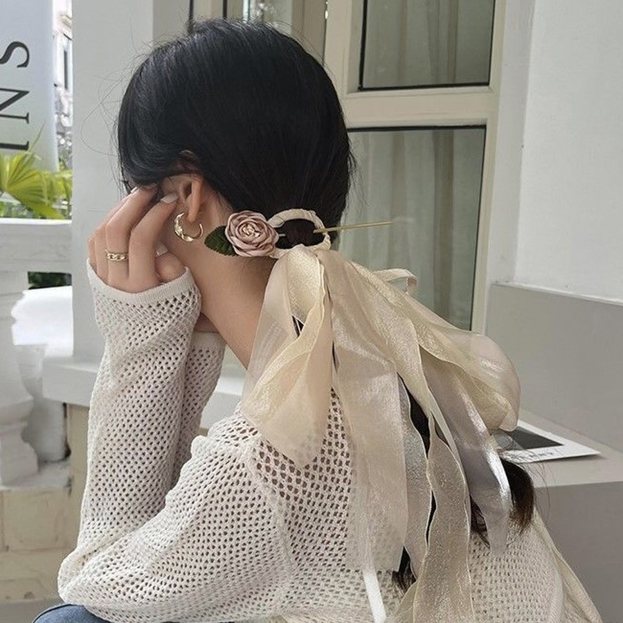 纏めた髪の毛を通して、簪で留めるだけで簡単ヘアアレンジ♪
