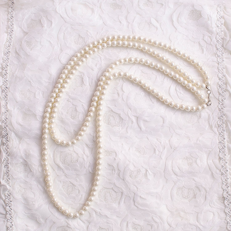 フェイクパールのロングネックレスです。